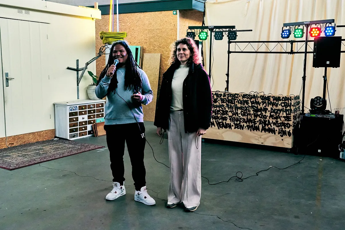 Alle aanwezigen die cultuur ondersteunen worden bedankt en Darin bedankt in het bijzonder zijn aanwezige moeder, die hem altijd ondersteunde en waar hij vroeger met zijn vrienden een plek vond waar ze konden opbloeien als artiest. Dit is wat House of Hiphop nu ook wil betekenen voor nieuw talent. “Alle elementen van hiphop moeten hier samenkomen. We willen de scene in Amersfoort verenigen, sterker maken”, zegt Darin. Dat gevoel van vereniging ontbrak volgens hem nog en met de opening van House of Hiphop in Amersfoort willen ze een plek creëren waar alle disciplines samen kunnen komen. Niet alleen op het gebied van muziek, maar ook op het gebied van onder andere mode, dans en grafische vormgeving. “Dit moet de plek worden waar iedereen elkaar kan vinden.” Hanna sluit zich hierbij aan en zegt graag aan te willen haken bij alles wat er al gebeurt bij OOSTWEST en ze hopen ook alle generaties te bereiken, van jong tot oud. Het aanwezige publiek van vandaag voldoet in elk geval wel al aan deze hoop.