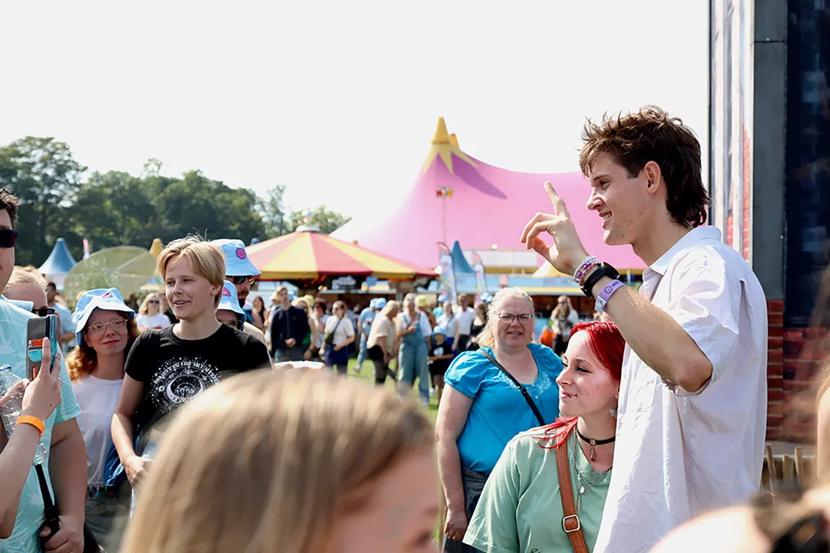 Eerder op de dag zei Mitchel dit: “Het is natuurlijk een heel groot open veld, waar we zo veel mogelijk verschillende podia in willen zetten. Dat zorgt er wel voor dat het een beetje botst op sommige punten, maar ik heb wel het idee dat we het nu zo gepositioneerd hebben dat je in ieder geval geen last van elkaar hebt.” Toen wist hij misschien nog niet dat het zo slecht zou uitpakken met de Mayhem en de Razzle Dazzle tegenover elkaar. En ook wist hij misschien niet hoe het later die avond zou zijn bij De Jeugd van Tegenwoordig, in de Brouhaha - ook daar bleek de grote afstand tussen de twee podia niet genoeg om ‘botsing’ te voorkomen.
