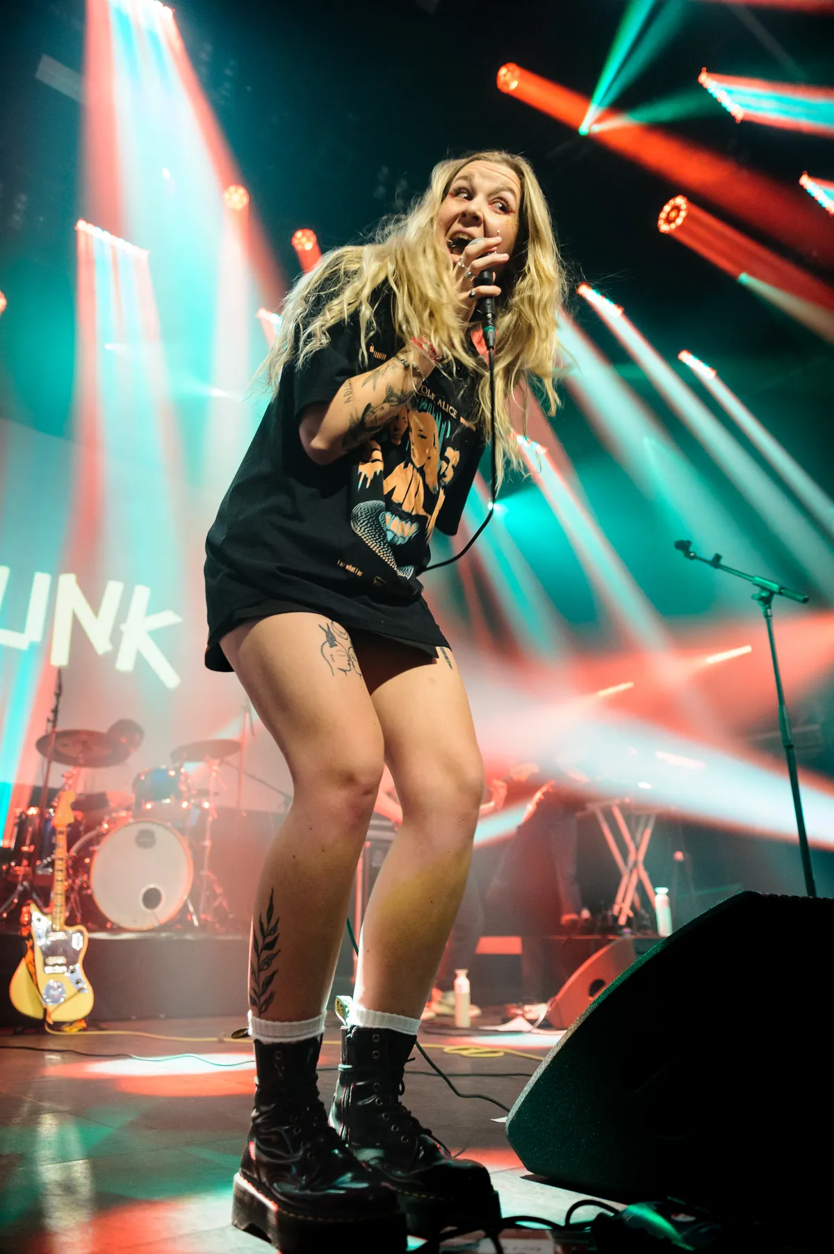 Dan is er nog een klein verhaal in aanloop naar het optreden vlak voordat de band op moet. Het kan knap spannend zijn als je een onderdeel mist met waarmee je moet op gaan treden. Bassist Vic vertelt dat hij zijn pedalboard mist voor de bassgitaar vlak voordat de band zich moet gaan klaar maken voor hun optreden. De blikken van: ‘Dit meen je toch niet?’. Het is inderdaad wel zo en frontvrouw Joan loopt in haar outfit waarmee ze het optreden naar buiten om vervolgens een sprint te trekken naar haar auto waar het onderdeel in ligt en die auto staat nou net niet helemaal dichtbij de zaal, maar twee straten verder. Uiteindelijk lukt het en komt een buiten adem klinkende frontvrouw terug met het onderdeel. Met de adrenaline vol in het lijf speelt Joan samen met HUNK alles van zich af. De band heeft er ontzettend veel zin in en weet dat spelplezier ook te vertalen tijdens hun optreden.