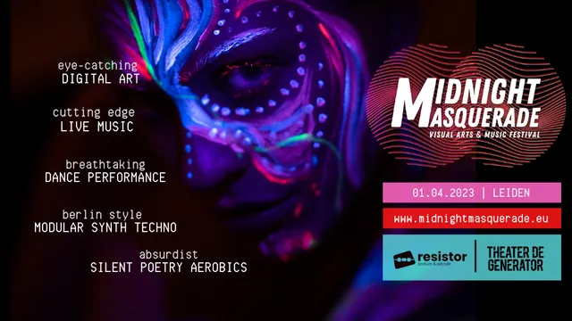 Midnight Masquerade is een kruising tussen een kunstfestival, een gemaskerd bal en een Berlijnse technoclub. In deze futuristische versie van een bal masqué word je geprikkeld na te denken over anonimiteit, privacy en identiteit. Wie ben jij achter je masker en wie ben je als het masker weer afzet?