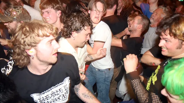 En over topkwaliteit uit Rotterdam gesproken. Voor de afsluiting van onze avond gaan we naar De Hoogte. Daar is een kleine zaal en een grote zaal. In de kleine zaal is de line-up van deze avond samengesteld door punkshow-organisatie Rat Race. Het Rotterdamse M.U.G. sluit hier af. M.U.G. staat garant voor keiharde punk en zodra er wordt afgetikt ontploft het zaaltje. Ervaren Rat Race-gangers, locals en liefhebbers storten zich in de mosh, pogoën er op los of proberen een biertje met de rest van het publiek te delen. Voor sommigen in het publiek is dit een leeftstijl of een noodzakelijkheid, voor anderen een prettige kennismaking. De frontman checkt stoempend en tierend hoe lang het snoer van de microfoon is en of hij het eind van de zaal kan bereiken, de kolkende massa om hem heen. Sfeertje, hoor.
