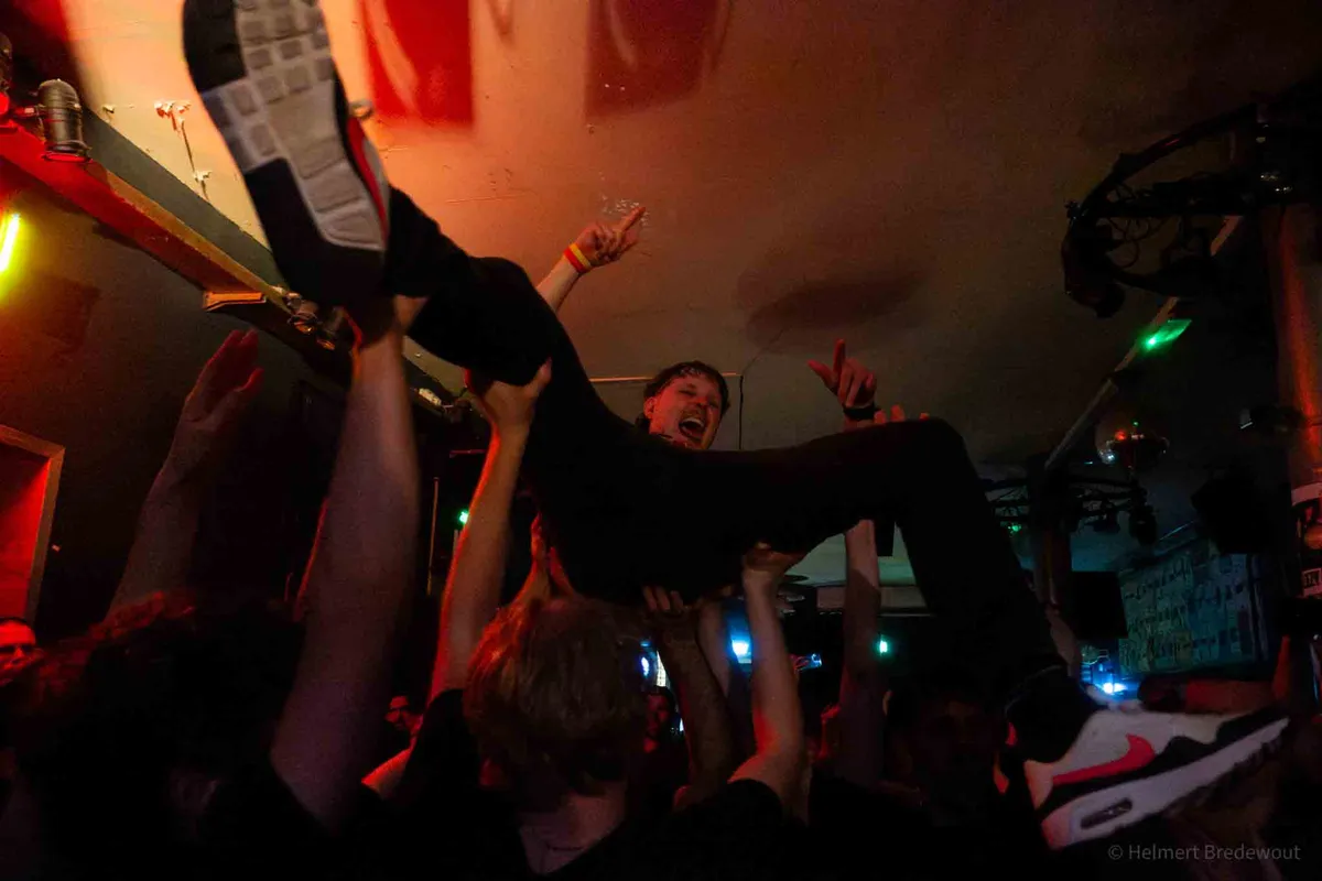 De gitaarriffs houden iedereen in beweging terwijl de baslijnen je aan je enkels de grond in lijken te trekken. Om het compleet te maken wordt er een trombone op het podium getoverd om ‘Oh No’ te voorzien van het karakteristieke geblaas. Dat er gedanst werd, hadden we al gezegd, maar wie dat het beste kan is toch wel zanger Jeroen die even zijn inner Elvis de vrije loop laat en alle opgekropte energie uit zijn benen schudt.