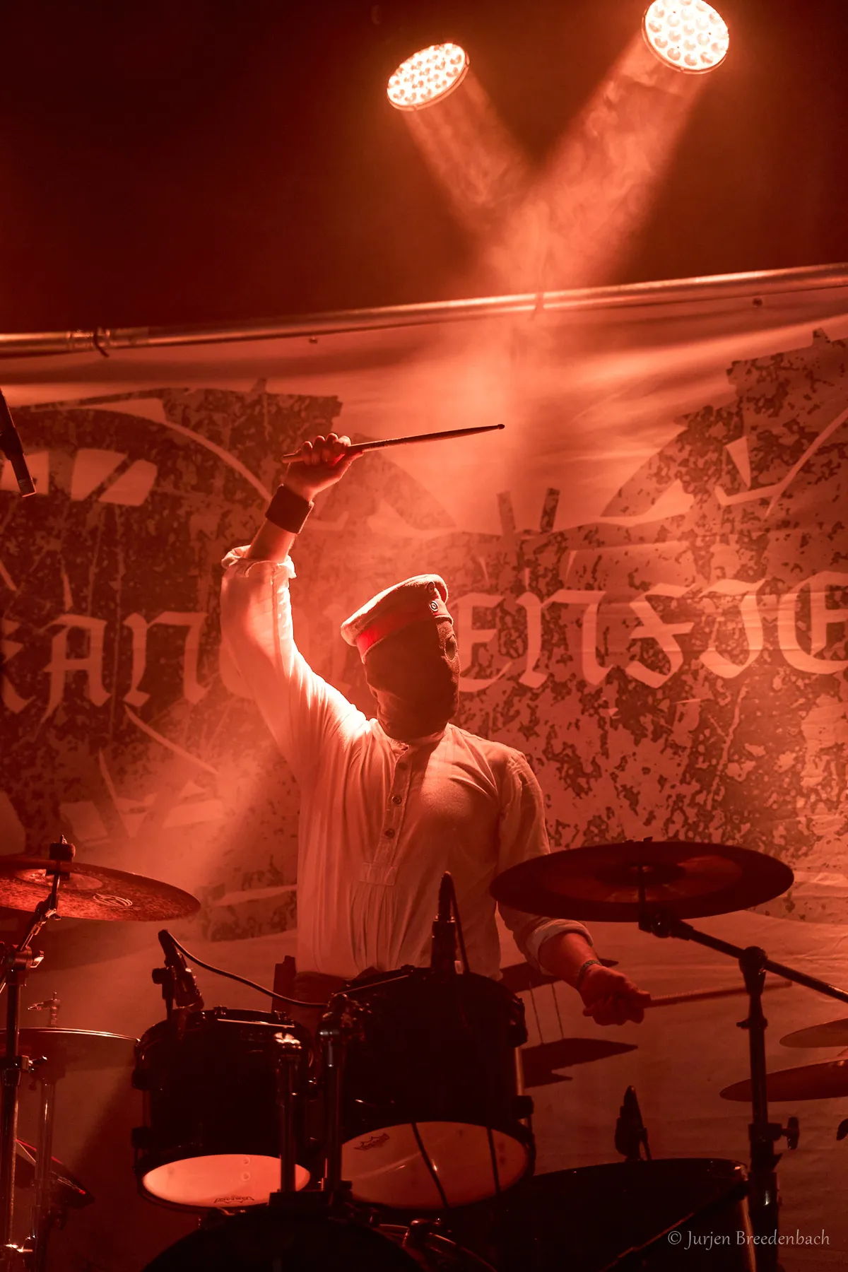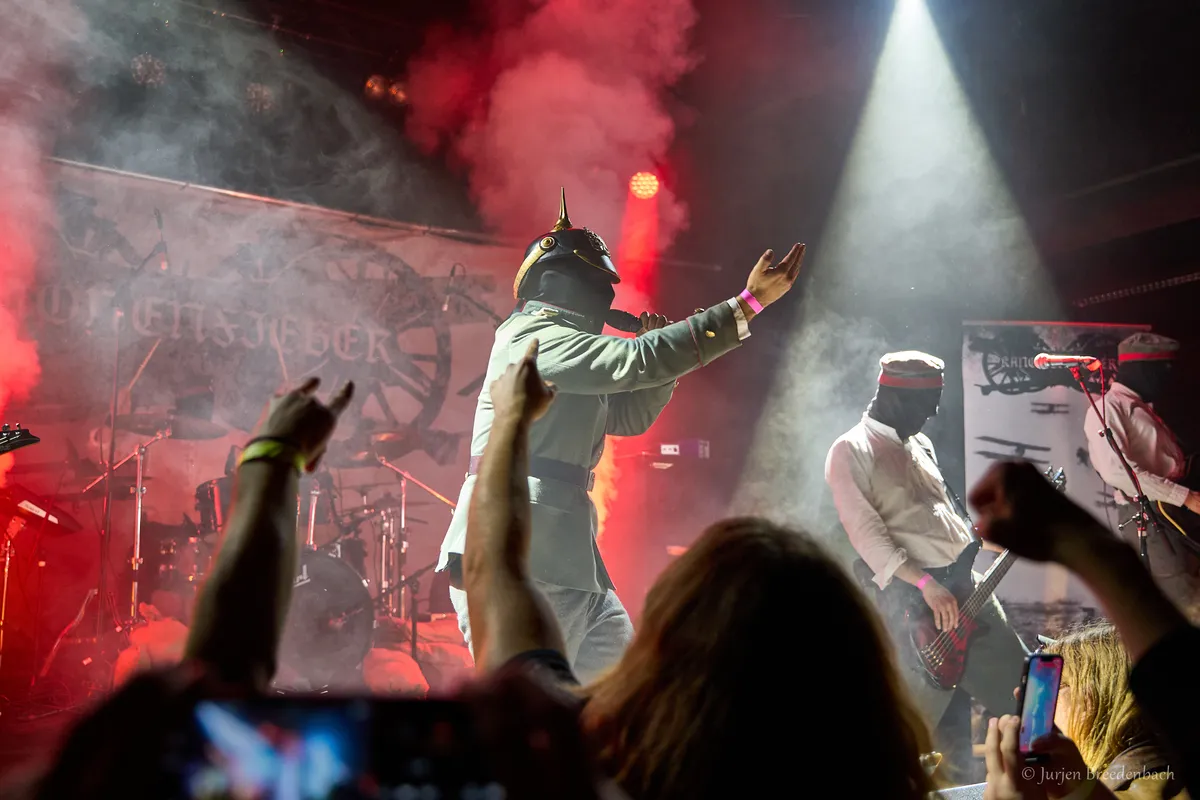 Het Friese Deadspeak trekt met een strakke set old school deathmetal door de ruimte heen en vreemde eend in de bijt Grima uit Syberië laat een atmosferisch blackmetal geluid denderen. De Syberiërs spelen (te) kort, maar krachtig. Teethgrinder laat ook weer als vanouds hun tanden zien en sloopt Iduna vakkundig en geheel volgens verwachting. Het metaltheater van de dag komt van het Duitse Kanonenfieber dat er een complete show van maakt met de Eerste Wereldoorlog als uitgangspunt, inclusief nepsneeuw en kerstbomen.