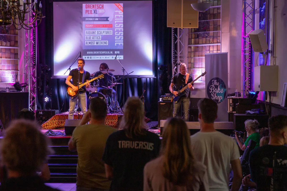 Ontwikkelingstraject Drentsch Peil XL is in volle gang. De eerste van de peilsessies vond afgelopen zaterdag plaats. Mariëlle Hensums legde voor ons de optredens van Almost Weekend, Radiant Sculptures en Blue Attics vast.