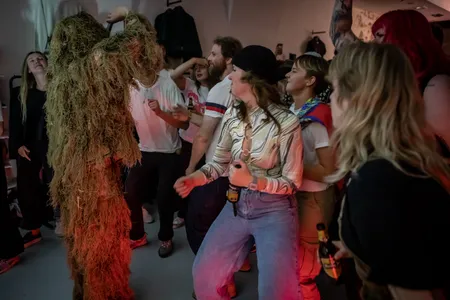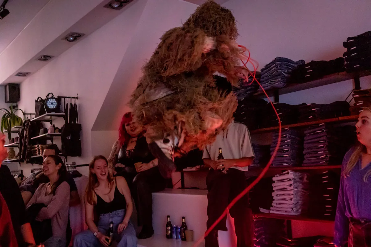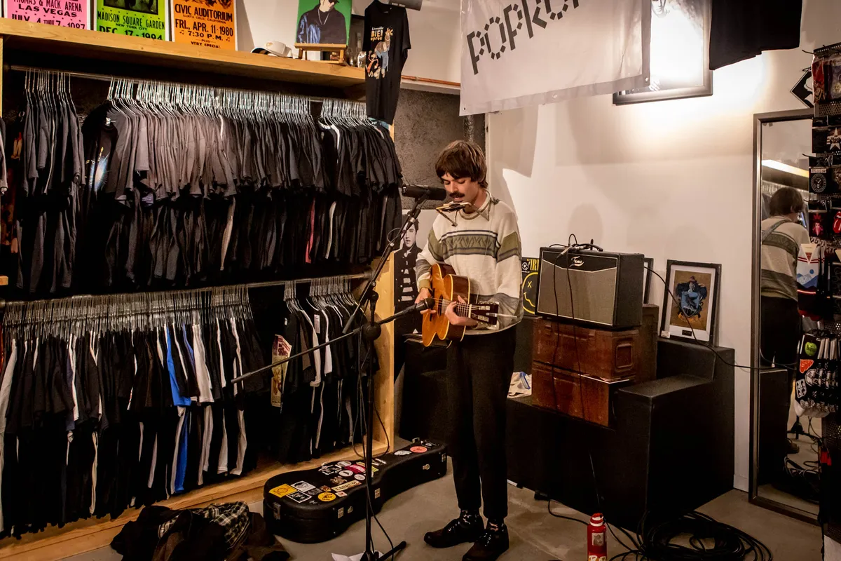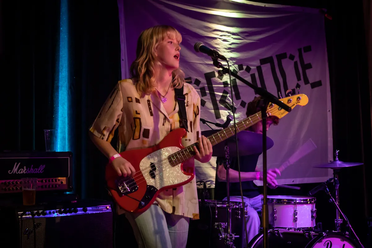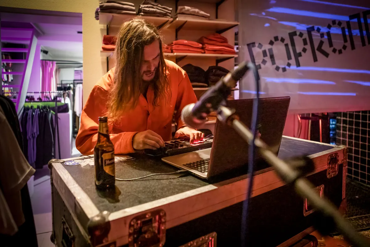 Terug op de Nieuwstad regent het pijpenstelen en zoekt iedereen een schuilplaats. Dit komt goed uit voor de bands, want op deze manier staan alle plekken binnen no time vol. Als we Hardwerk x Fogeltje binnenlopen zien we mensen de regen van zich af dansen. Dit is mede de verdienste van Poodle, Die haar garage rock vol energie de kledingzaak doorpompt.