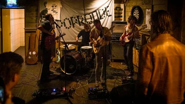 Het voelt als een ouderwetse avond Popronde in het centrum van Leeuwarden. Rumoer buiten de kroegen en de Nieuwstad vol met mensen die druk in hun programma boekjes kijken. De Rus is de eerste kroeg waar we binnen stappen. Het Popronde publiek weet de locatie moeizaam te vinden, de kroeg is vol bezet met stamgasten. De Haagse band Fuzzy Teeth eindigt haar eerste nummer maar er is weinig respons vanuit het publiek. Nee het is niet de soundcheck en het zegt niks over de kwaliteit van de band, want die spelen met hun hart. Zijn deze mensen geen live muziek gewend? Of worden ze voor hun gevoel ruw verstoord in hun doorgaans kalme vrijdagavond.