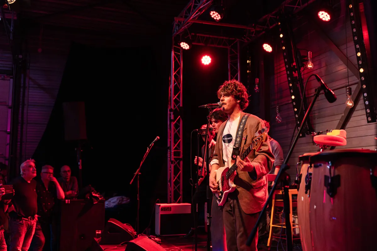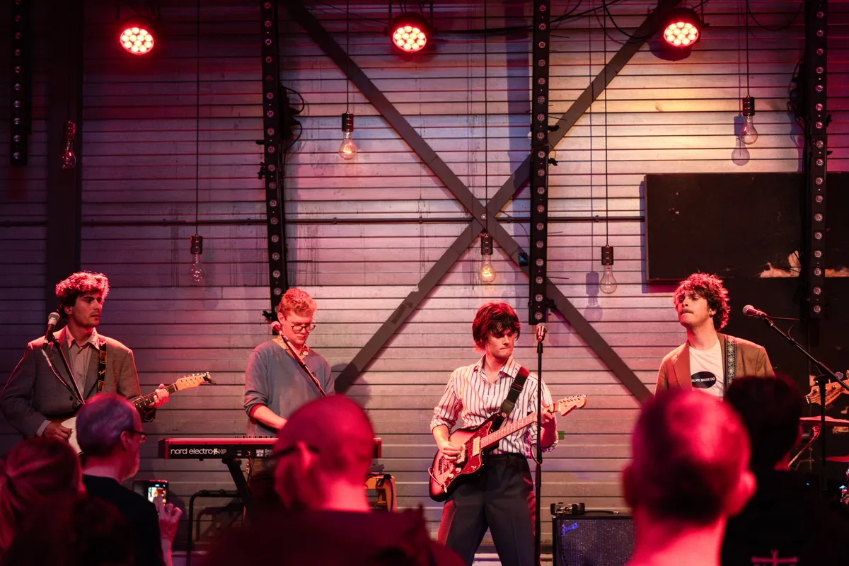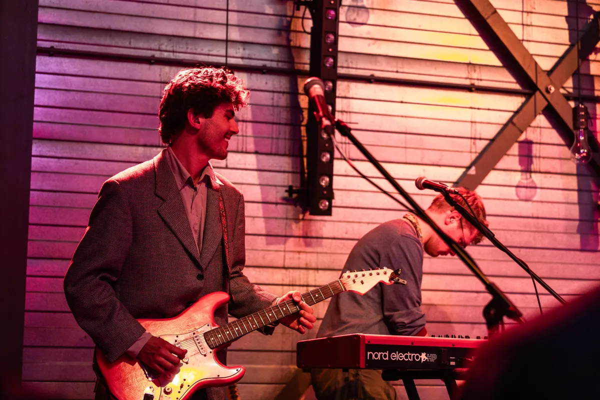 De EP Introducing Talks Make Do dateert alweer van februari 2024. Dat de EP aanslaat blijkt wel, want anders staat de band niet op een avond als deze te spelen tijdens Indiestad. De band bestaat eigenlijk nog niet eens zo gek lang. Frontman Alex Hoevenaars en gitarist/producer Arthur Vermeij zijn alleen wel al wat langer bezig. Bovendien is het tweetal goed bevriend en dat is te merken op de debuut EP. Een motto waar de band zich graag van bedient is ‘het idee is koning’. Dat is eveneens terug te horen in de muziek van Talks Make Do. Hoe dat komt? Alles heeft te maken met de bewondering die ze hebben voor filmmaker David Lynch. Het is het mystieke element wat de band laat horen. Nog meer waarom de band in de belangstelling staat, heeft te maken met hun optreden in het NPO Radio 2 programma van Leo Blokhuis.
