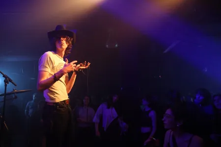 Het slotakkoord is aan Fellatio, dat ontregelt tot achterin je keel. Als een soort liefdeskind van een vroege Julian Casablancas en True Detective-era Matthew McConaughey staat de frontman in cowboyhoed, trenchcoat en aviators slungelig te bewegen op het podium. Wat hij schreeuwt is onduidelijk, maar hij overtuigt. Hij beent de zaal in, splijt de zee van mensen in tweeën en predikt met zijn wijsvinger bibberend in de lucht. Hij heeft de waarheid in pacht, het publiek is zijn bekeerling, en het woord van God? Dat is keiharde avant-garde disco punk post-penis krautpop. Daar is het publiek maar al te ontvankelijk voor, want het kolkt op de vloer.