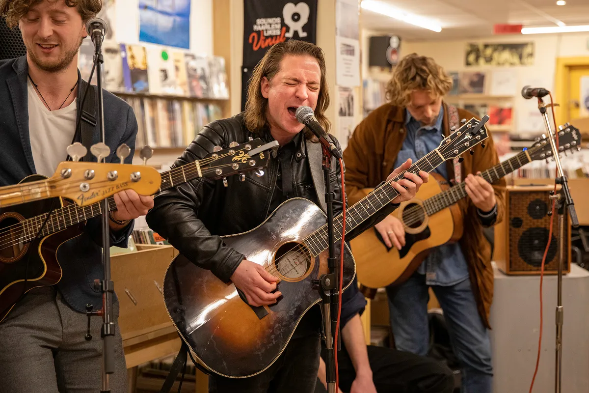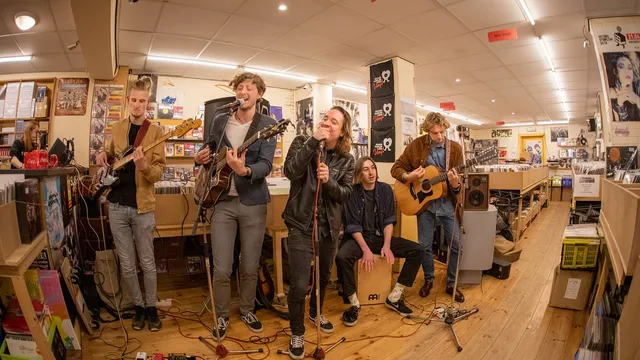 Maar nu bevinden we ons gewoon in hartje Haarlem, waar de band het album akoestisch presenteert in Sounds Haarlem. Drie gitaren, waaronder zelfs twaalfsnarig, een bas en een cajón. Deze energieke mannen willen gewoon lekker muziek maken, en hoe. Lennart Klop, zanger van de band, heeft een heerlijk volle stem met een rauw randje. Samen met de backing-vocalen van gitaristen Rik Haker en Marnix Ducroock klinken er evenwichtige harmonieën door de platenwinkel heen. Ducroock en Haker spelen er daarbij overigens ook op hun gitaren stevig op los. Samen met Klop, die zichzelf op gitaar begeleidt, ontstaan er interessante wendingen en harmonieën. Deze band heeft als een spons ontzettend veel invloeden opgezogen, en gebruikt dat nu allemaal in zijn spel. De ritmesectie, bestaande uit Thijs Alting op cajón en Julian Hendriks op bas, lijmt al die mooie klanken tot één geheel. Aan het eind is er tijd voor nog één laatste nummer. Hendriks vraagt: “met of zonder solo?”, waarop de band collectief reageert: “met natuurlijk!”. De akoestische set wordt hierdoor met een klapper afgesloten.