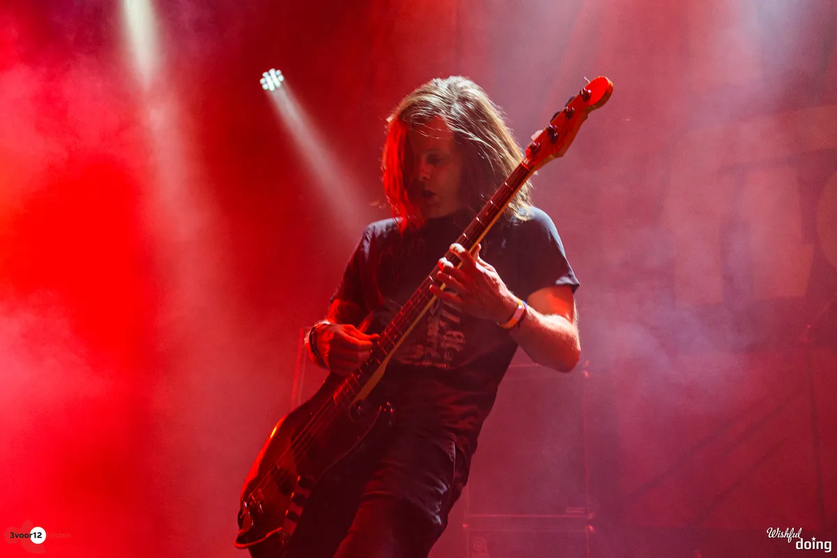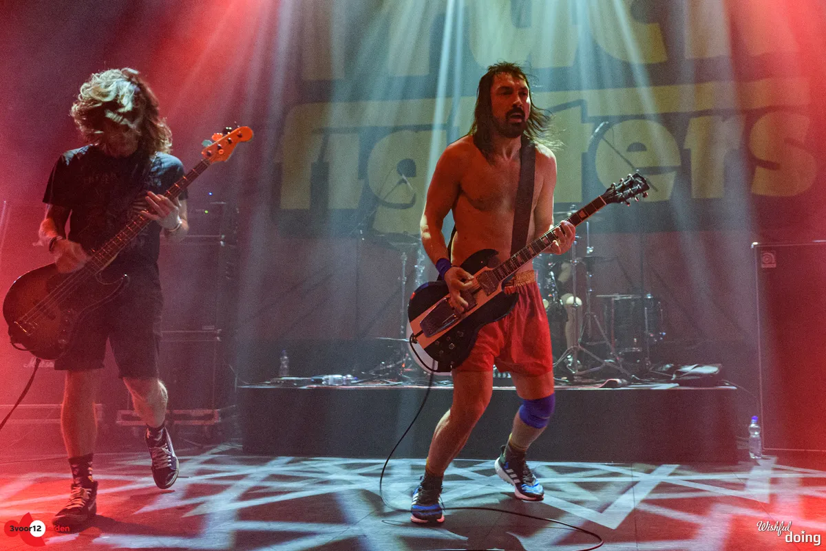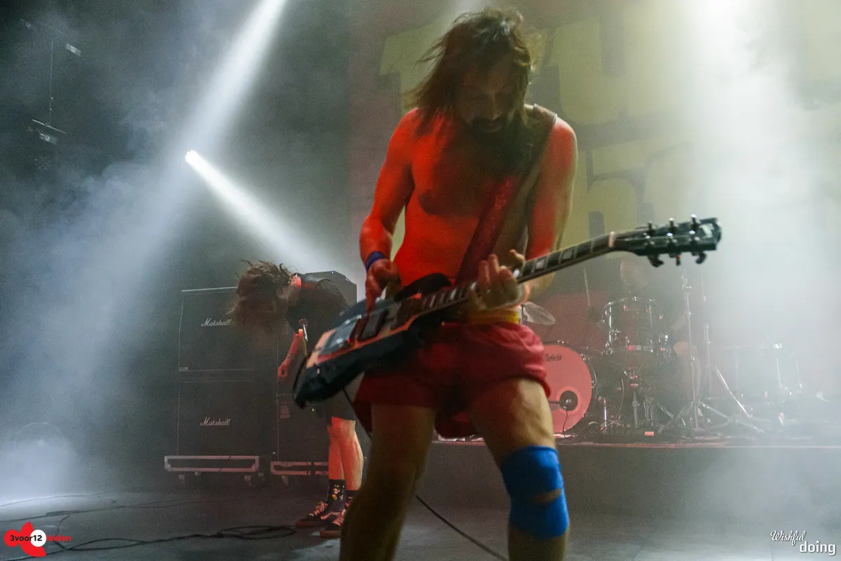 Niet leadzanger en bassist Ozo valt het meest op bij Truckfighters, maar gitarist Niklas Källgren. Deze Dango komt als eerste op in een shirt en net zo’n kort sportbroekje als Splinter’s Douwe; zijn shirt doet hij meteen uit en smijt die in het publiek. Hij ontziet zijn zwakke knie niet en is ontketend: hij rent en springt constant heen en weer en speelt vaak zo vooraan het podium dat hij bijna het publiek in duikt. Zijn solo’s zijn lang en vlekkeloos. Drummer Toro heeft volgens zijn shirt als doel “to fuck shit up and have a good time”, maar gelukkig doet hij alleen het laatste.