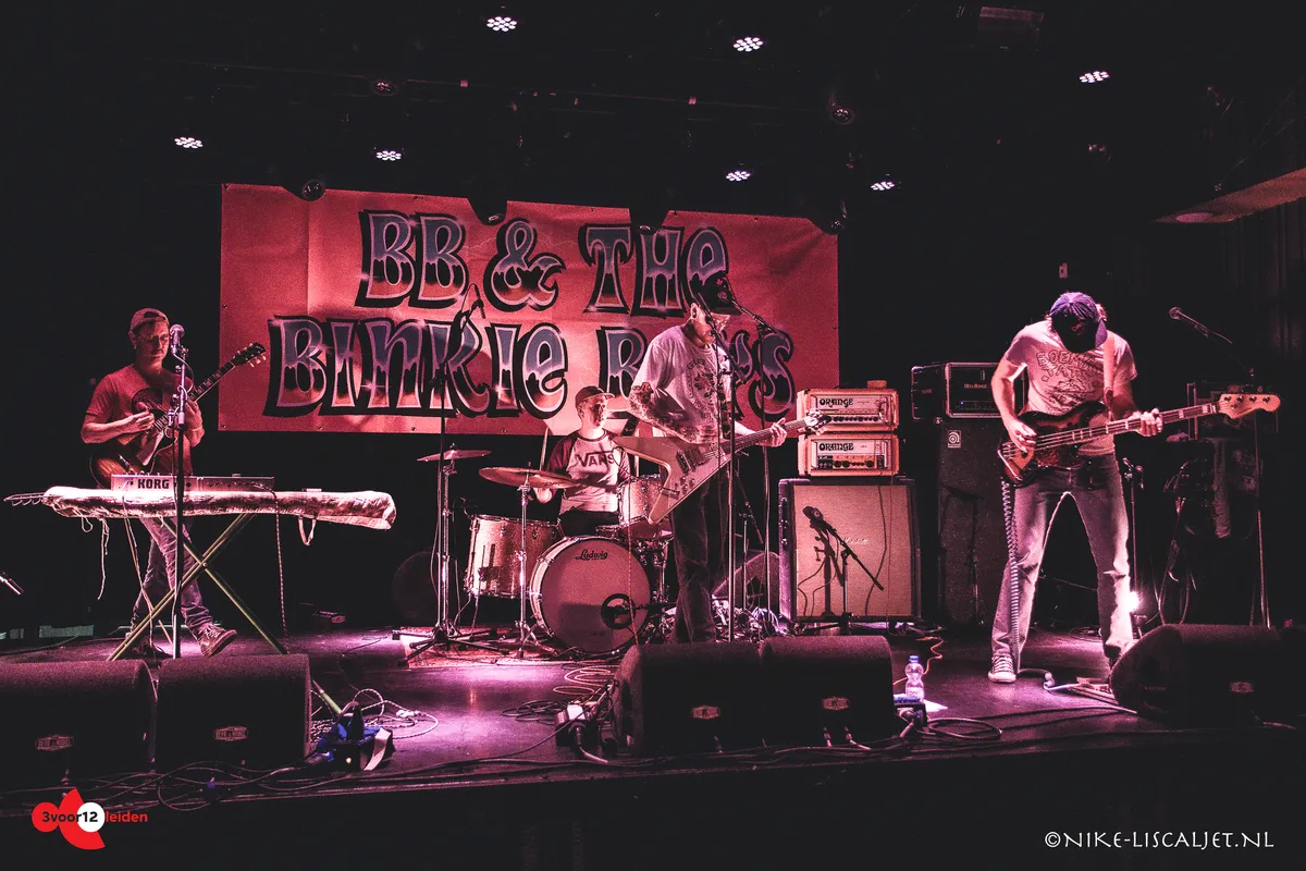 Net voor de opkomst van BB & The Binkie Boys komt er een soort après ski-Schlager uit de boxen van de Kleine Zaal. Het is zo vervreemdend dat het bewust moet zijn. De band komt op onder een soort “Yee ha!” met distortion. Bij de Noordwijkers vallen meteen interessante details op: Tims synthesizer staat op een strijkplank en het plectrum van bassist Ronald van Beek is langwerpig en lichtgevend.
