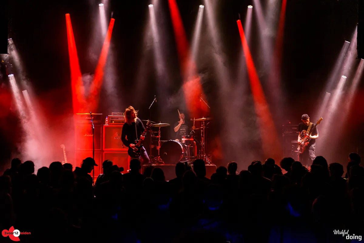 Hun optreden begint via ‘Tinto Traveller’ met een dromerig riffje, dat overgaat in stonerachtige lange en rollende akkoorden met dynamische drum van Matthieu. Tegen het geweld van de drum en bas is vanavond niet op te zingen, al doet Loek enorm zijn best daarvoor. Het publiek pikt dat op; bij ‘Cyborg’, het tweede nummer, ontstaat de eerste mosh in de Kleine Zaal.