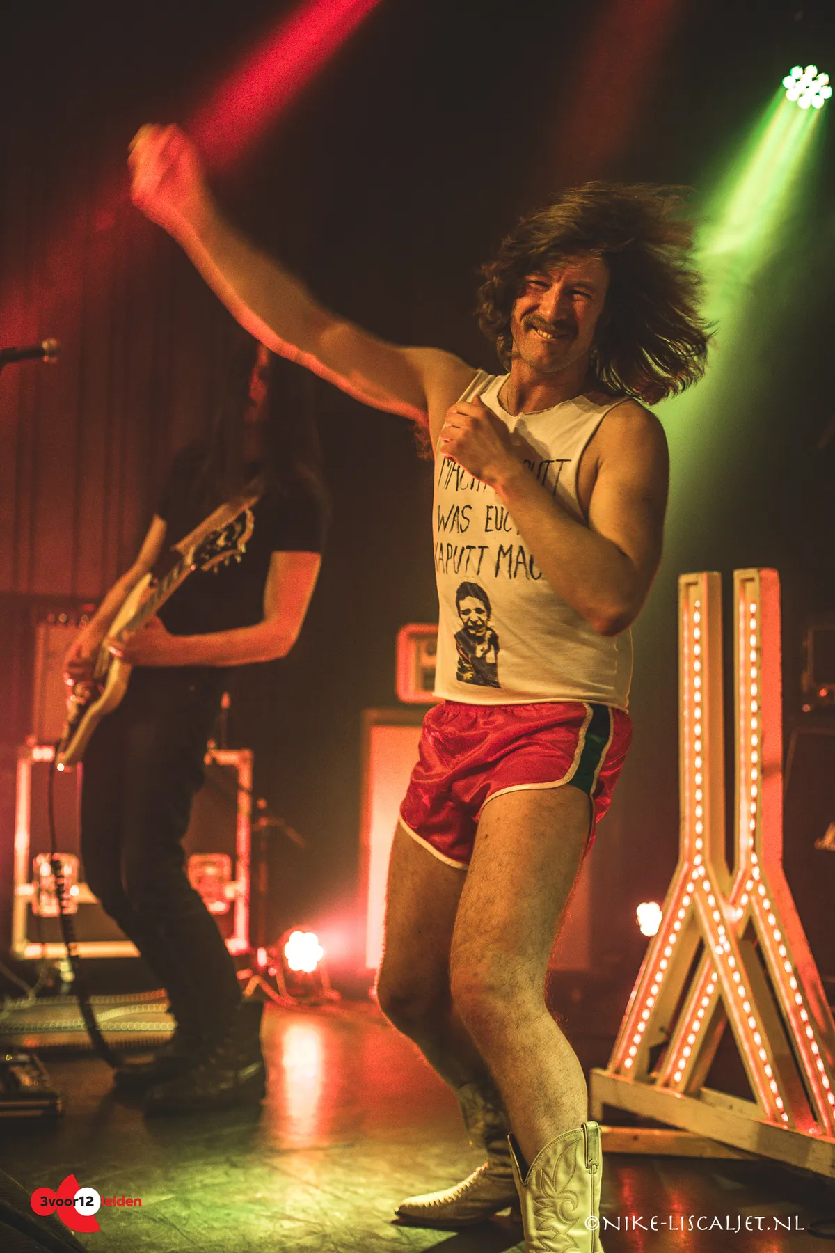 De getatoeëerde leadzanger Bram zingt distorted, en uit zijn Flying V-gitaar komen rollende riffjes, Ronald bast heel smooth. Inclusief de toegift ‘Out of my bolleke’ komt hun hele nieuwe EP ‘EXPLOSION HAZARD’ voorbij. Het publiek gaat er goed op: er wordt massaal gemosht (er is meer ruimte in de Kleine Zaal dan eerst) onder aanvoering van een bebaarde man die op het podium springt, juicht, zichzelf het publiek weer in lanceert, terugklautert, een slok van Brams biertje neemt en het flesje spetterend weer terugzet. Uiteindelijk wordt frontman Bram in het publiek rondgedragen op de schouders van een toeschouwer. Soms is er een moment van stilte, dat weer wordt verbroken door een ijle, distorted gitaarsolo. De hoogglans van Interstellar Solar Fest zit dit jaar aan het eind.