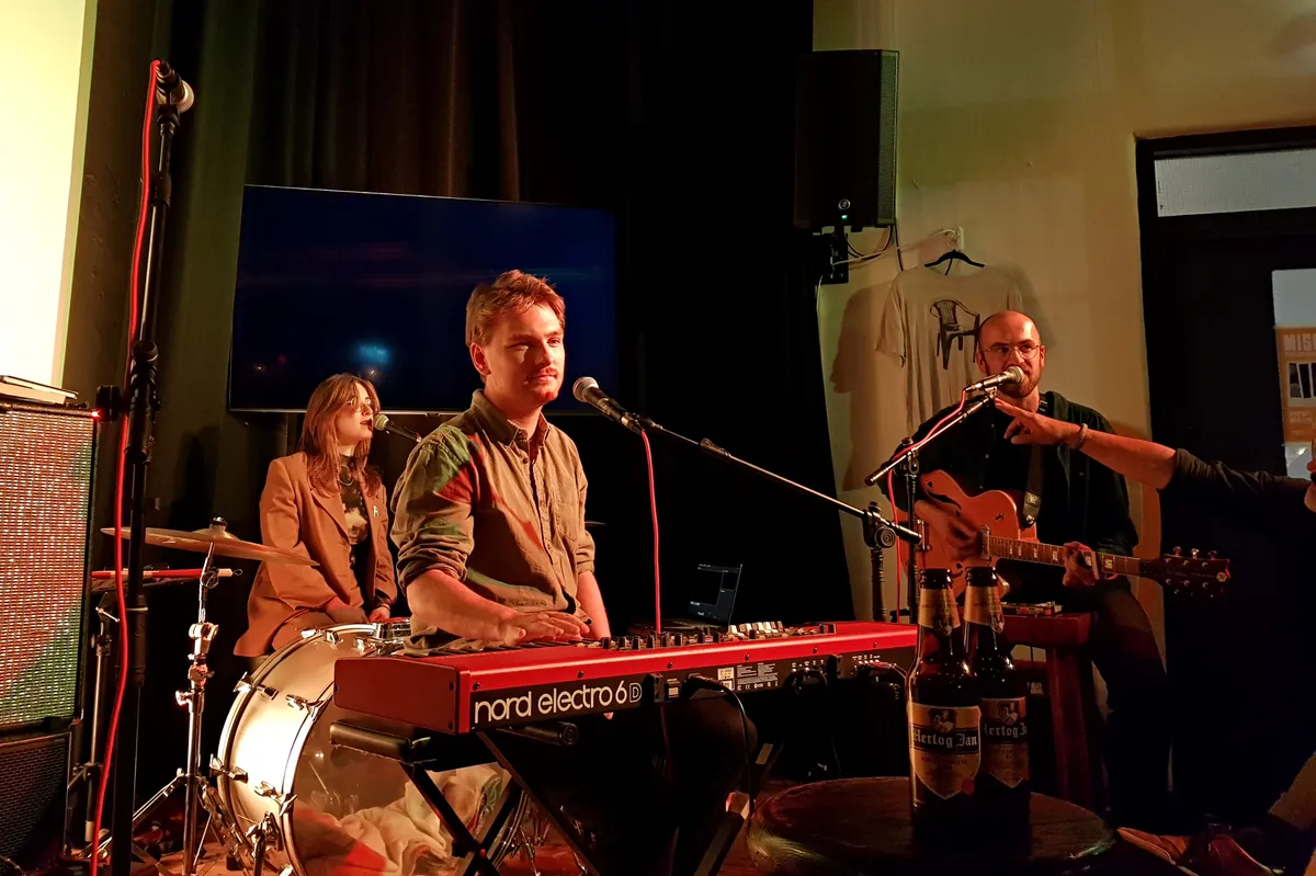 Joris: “We hebben de eerste batch nummers in juni 2023 opgenomen, maar we hadden ons toen al ingeschreven voor de Popronde. Daar werden we echter in 2023 niet voor geselecteerd. En volgens mij hebben we toen pas bedacht van oké, dan gaan we een plaat maken.” Tom: “Die was in de zomer van 2024 redelijk af. Maar toen deden we wél mee aan de Popronde en was het slimmer het album weer even op de plank te laten liggen.”