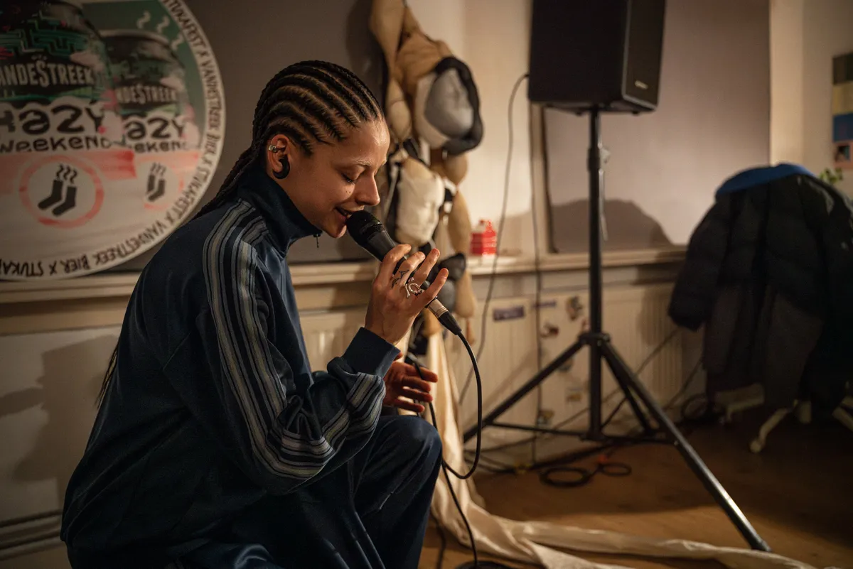zoophis. speelt deze avond in een studentenkamer van klein formaat. Zo'n twintig mensen stromen de ruimte binnen, maar de intimiteit die de krapte voortbrengt vervaagt het onderscheid tussen podium en publiek niet. De ruimte is aangevuld met decoratie die een vertolking is van het debuutalbum leeg. lichaam., dat eind april uitkomt. zoophis. begint zacht en teder en maakt zonder enig ongemak oogcontact met het publiek. Het genot om nummers zoals ‘echo’ en ‘huishonger’ te spelen is van diens gezicht af te lezen. Het publiek beweegt subtiel mee met alles wat zoophis. speelt. Later in het optreden wordt de zachtheid afgewisseld met teksten die contrasterend hard de kamer in geschreeuwd worden.