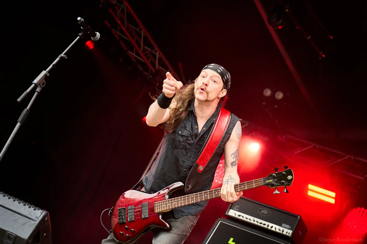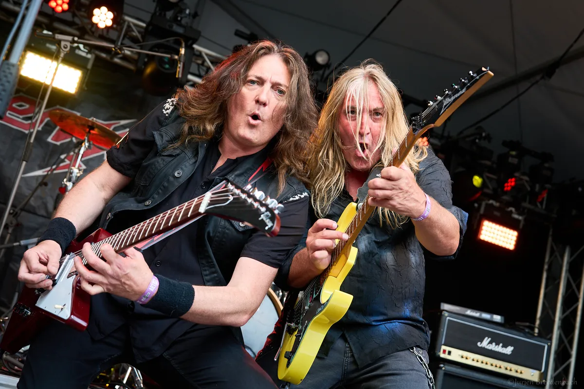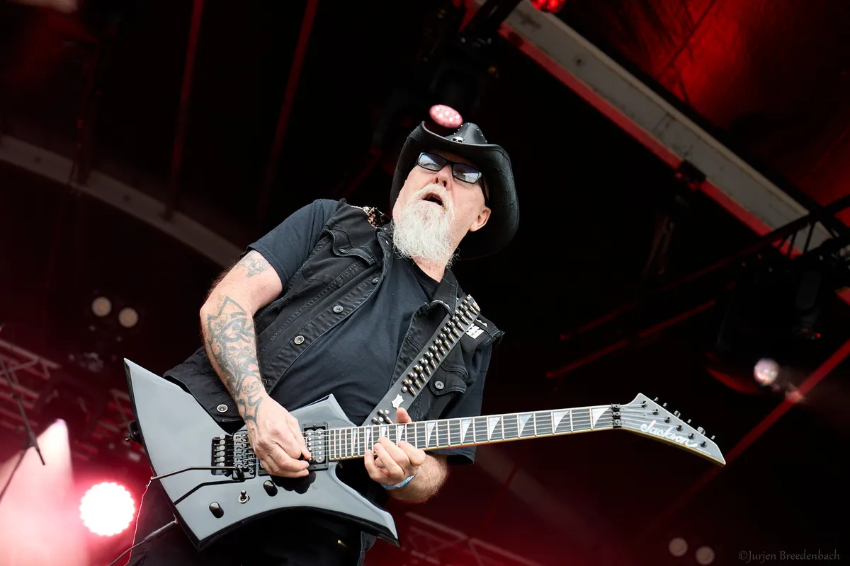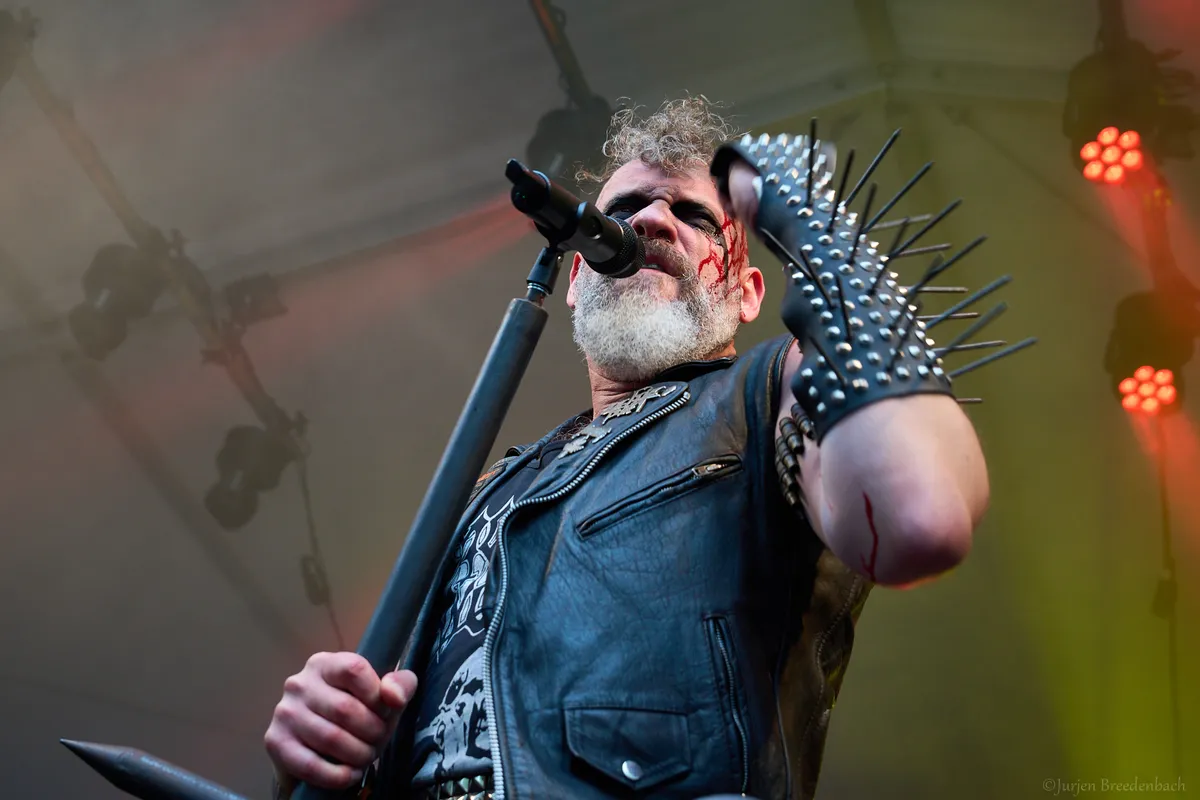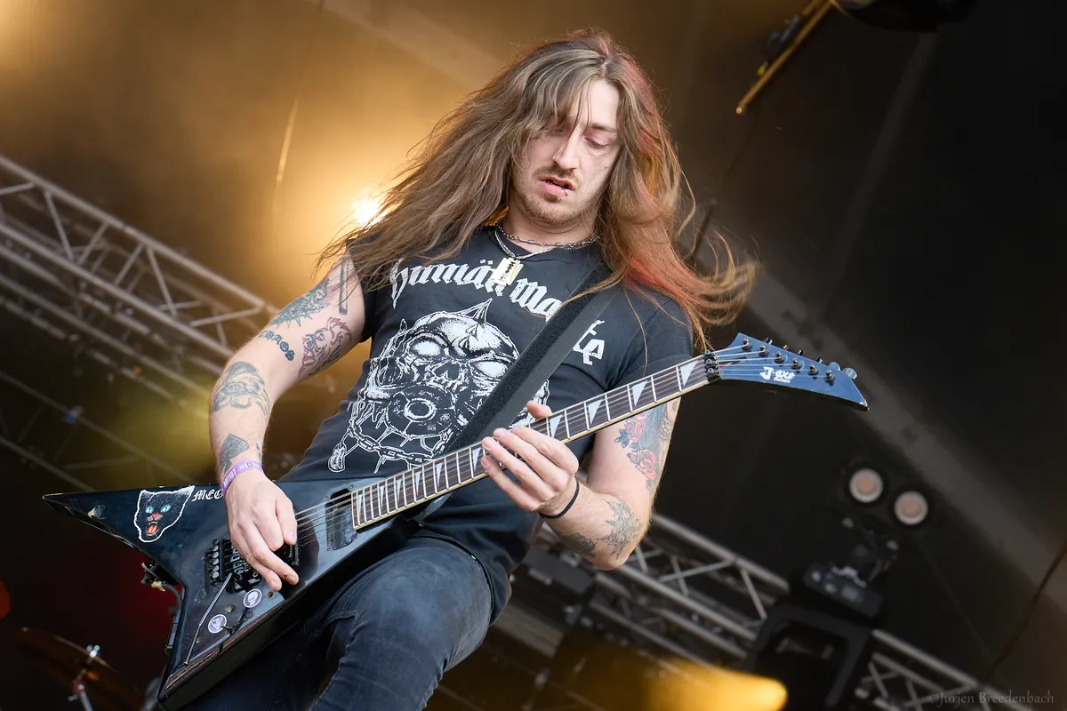 Het uit Los Angeles afkomstige Vio-lence heeft de volumeknop gevonden want de show is aanzienlijk veel luider dan de eerste act Arion. Wat direct opvalt is de bijzondere set-up van de drums, met maar liefst twee bass drums waar drummer Perry Strickland zijn handen de vernieling in slaat. De energie die van het podium afstuift laat het publiek eerst wat versuft achter. Het debuutalbum van de band kwam uit in 1988, dus ze gaan al even mee. Met hier en daar een hiatus is de band sinds 2019 weer samen en kwam hun plaat Let The World Burn uit. Vio-lence doet de naam eer aan, ze zetten vandaag een energieke en agressieve thrashshow neer waarbij er in het milde publiek zelfs een voorzichtige circle pit ontstaat tijdens het nummer Bodies on Bodies. Zanger Sean Killian weet de sociaal/politieke teksten nog altijd met passie over te brengen en laat een enthousiast publiek achter. (Sannette de Groes)