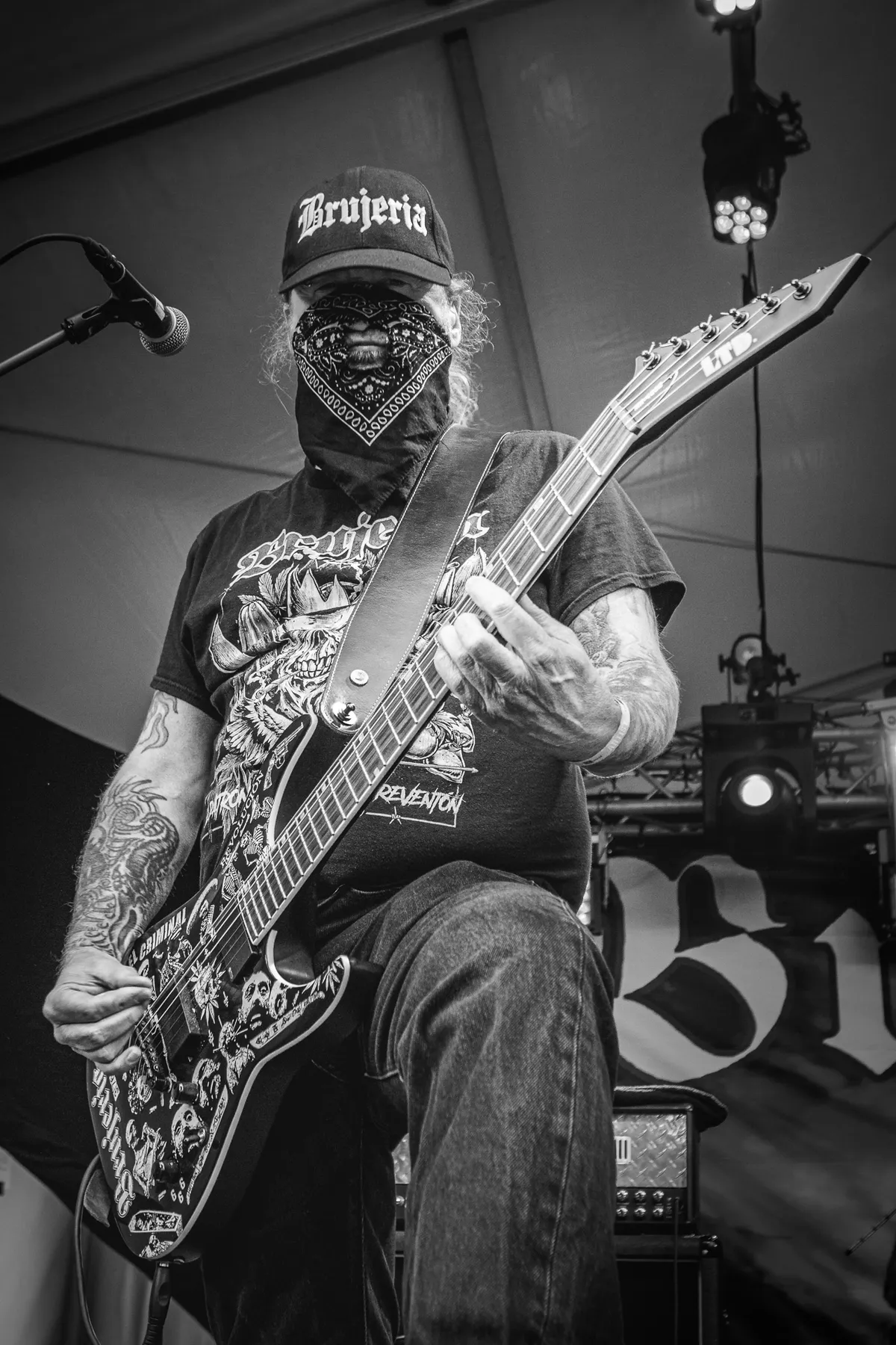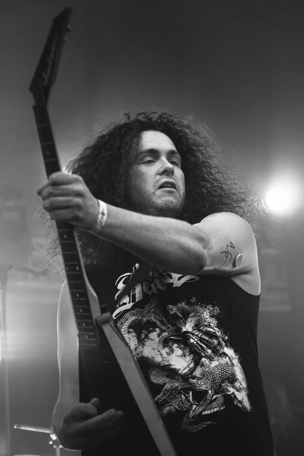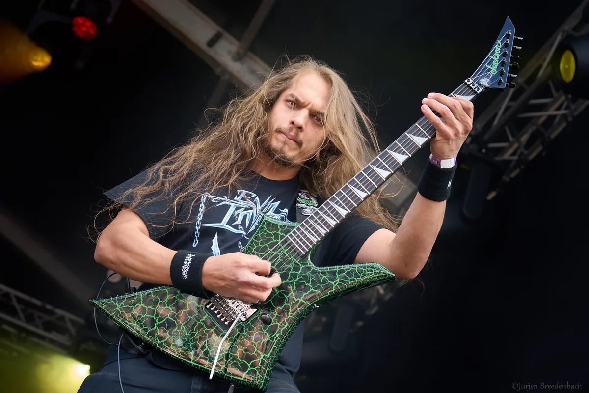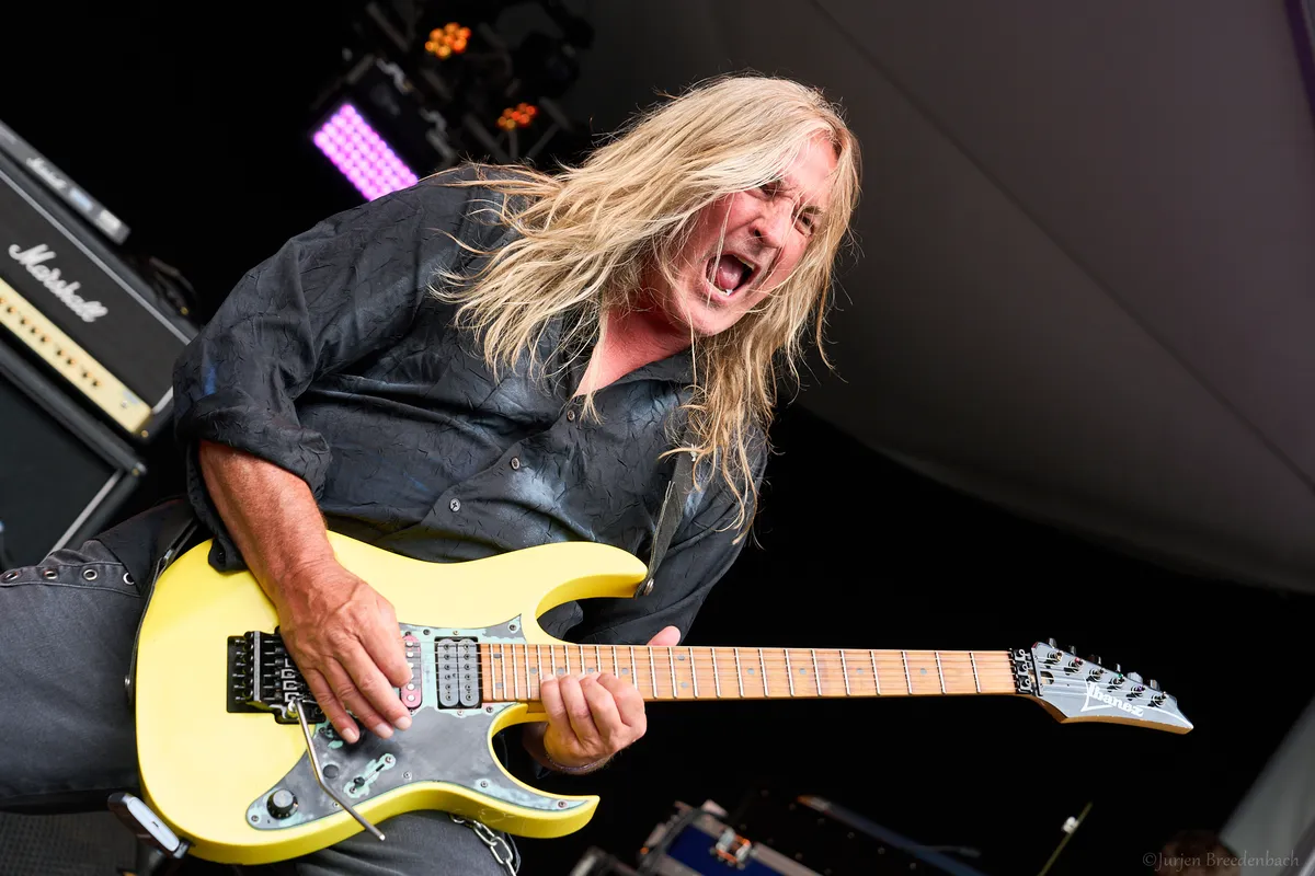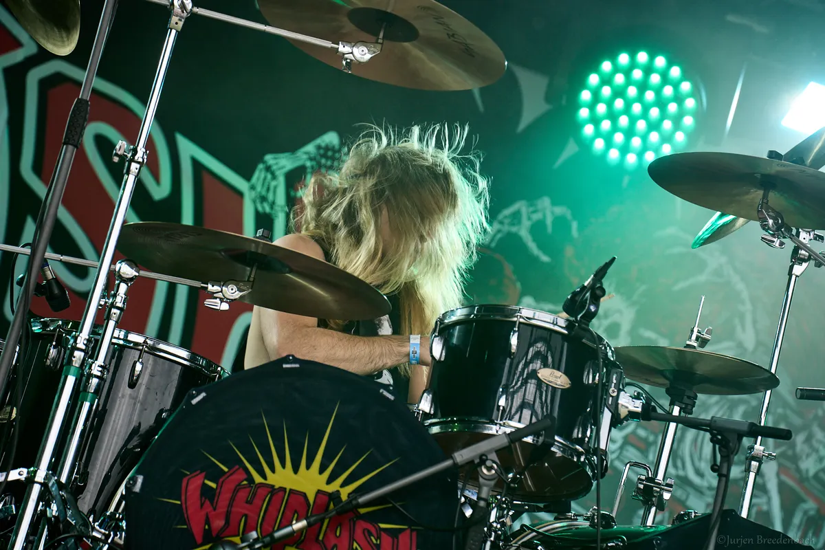 Het uit Los Angeles afkomstige Vio-lence heeft de volumeknop gevonden want de show is aanzienlijk veel luider dan de eerste act Arion. Wat direct opvalt is de bijzondere set-up van de drums, met maar liefst twee bass drums waar drummer Perry Strickland zijn handen de vernieling in slaat. De energie die van het podium afstuift laat het publiek eerst wat versuft achter. Het debuutalbum van de band kwam uit in 1988, dus ze gaan al even mee. Met hier en daar een hiatus is de band sinds 2019 weer samen en kwam hun plaat Let The World Burn uit. Vio-lence doet de naam eer aan, ze zetten vandaag een energieke en agressieve thrashshow neer waarbij er in het milde publiek zelfs een voorzichtige circle pit ontstaat tijdens het nummer Bodies on Bodies. Zanger Sean Killian weet de sociaal/politieke teksten nog altijd met passie over te brengen en laat een enthousiast publiek achter. (Sannette de Groes)