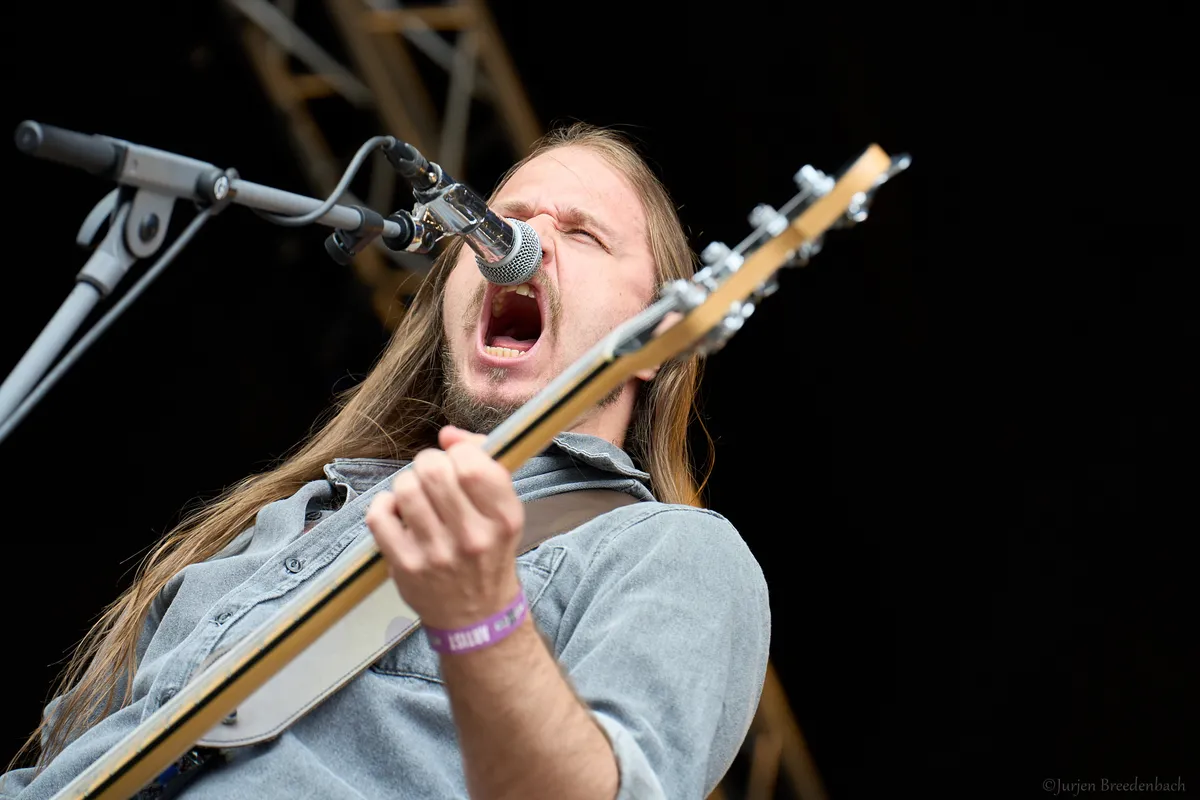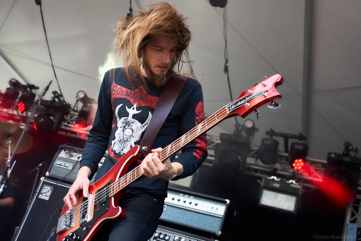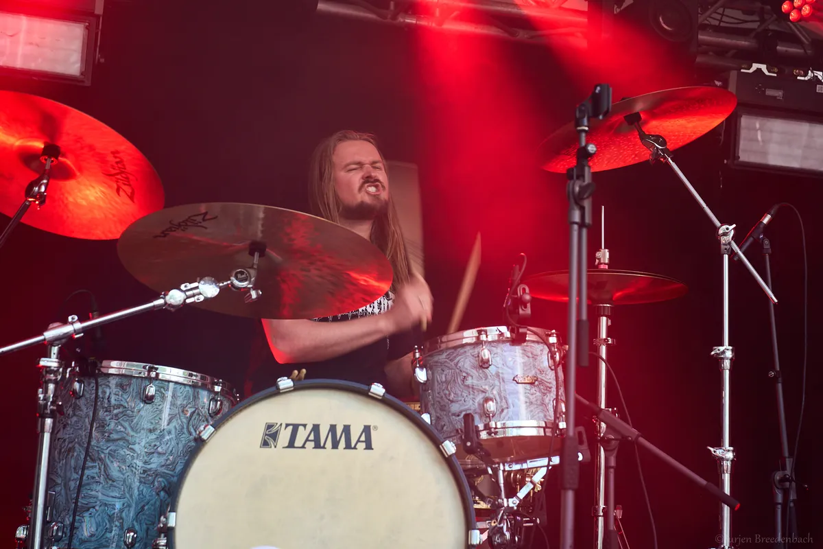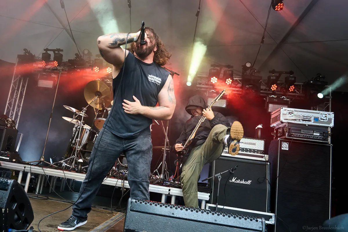 Rond het middaguur lopen we op zaterdag het festivalterrein weer op. De local heroes van Ter Ziele openen vandaag de Reaper Stage met hun post-blackened doom en als 3VOOR12/Friesland willen we dit niet mislopen. En we zijn niet de enige, want er heeft zich al een aardig publiek voor het podium verzameld. Ter Ziele sleept ons vol overgave de doom in, met sterke instrumentals en een vocalist die zich de ingewanden uit het lijf schreeuwt. De band sluit de show af met een lang nummer dat via een trage, grote opbouw eindigt met een lawaaierige energiebom van een climax, het publiek achterlatend in de sludge.