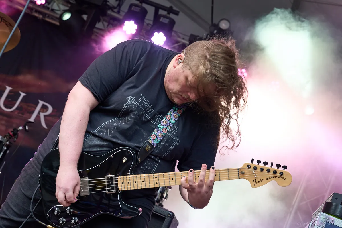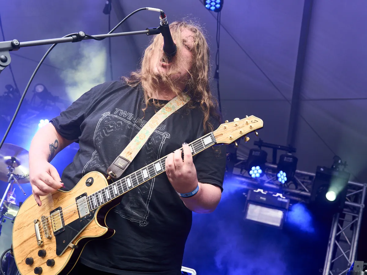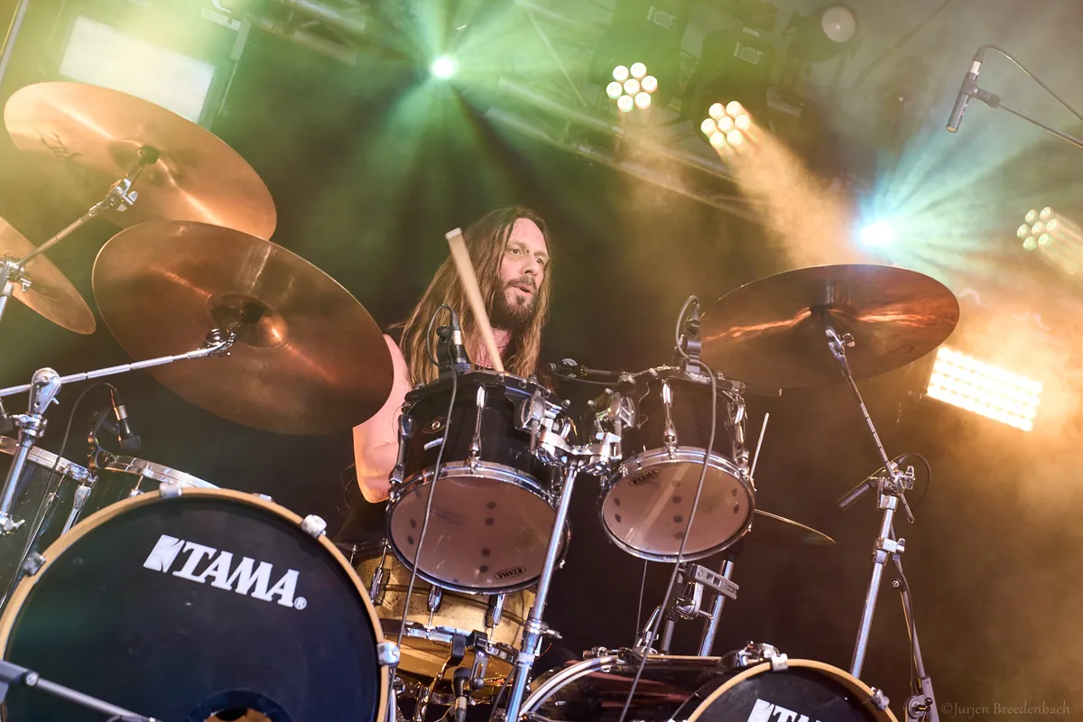 Rond het middaguur lopen we op zaterdag het festivalterrein weer op. De local heroes van Ter Ziele openen vandaag de Reaper Stage met hun post-blackened doom en als 3VOOR12/Friesland willen we dit niet mislopen. En we zijn niet de enige, want er heeft zich al een aardig publiek voor het podium verzameld. Ter Ziele sleept ons vol overgave de doom in, met sterke instrumentals en een vocalist die zich de ingewanden uit het lijf schreeuwt. De band sluit de show af met een lang nummer dat via een trage, grote opbouw eindigt met een lawaaierige energiebom van een climax, het publiek achterlatend in de sludge.