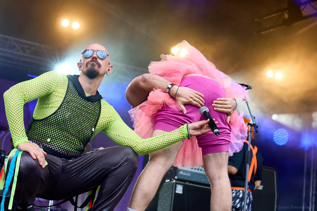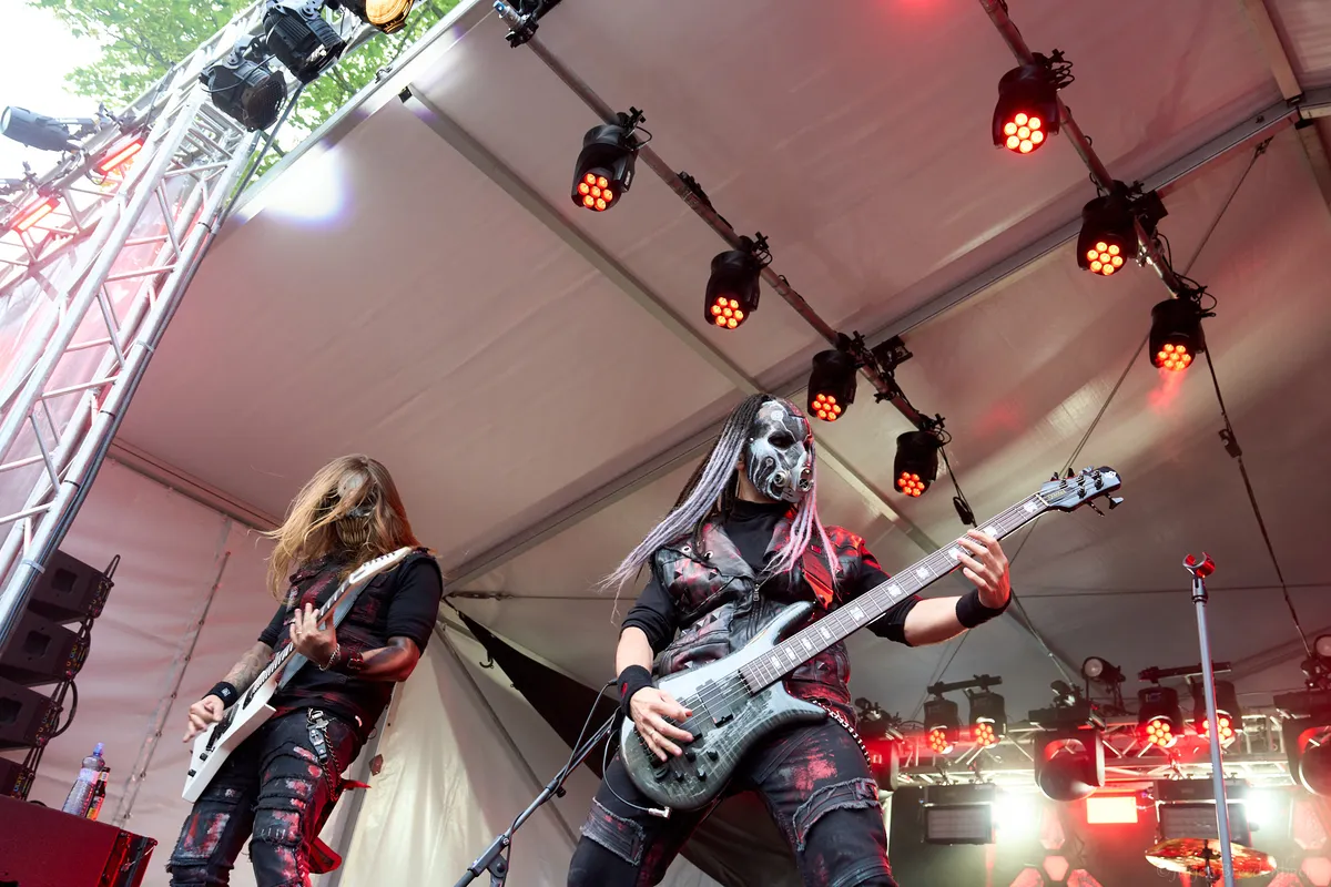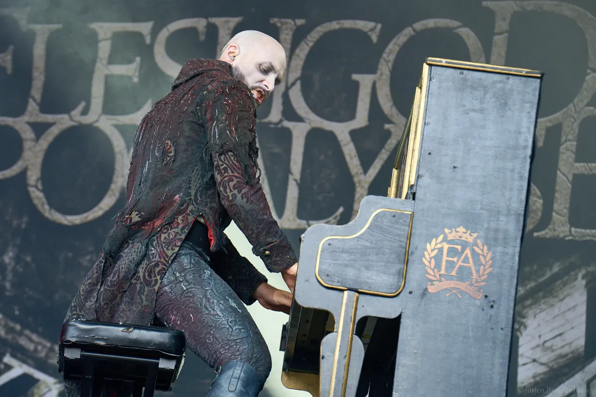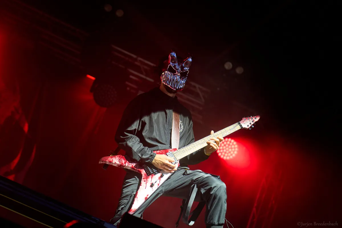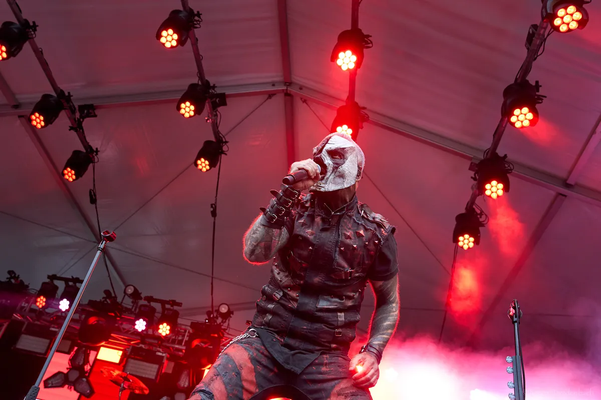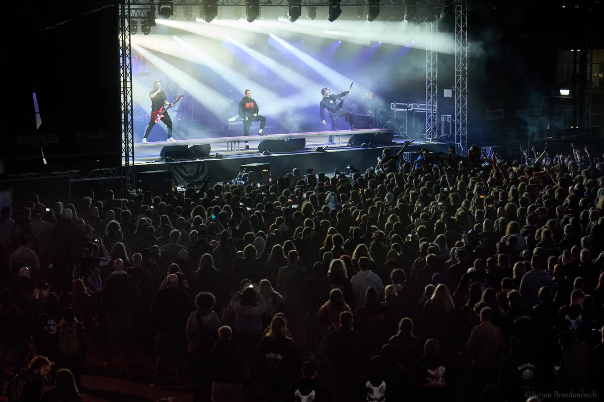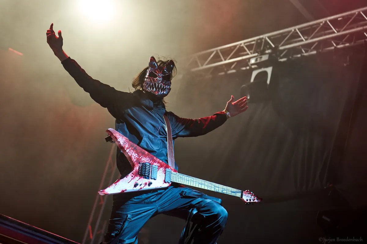 Een Gregoriaanse chant schalt dreigend over het Oldehoofsterkerkhof. Vijf mannen in monsterlijke maskers lopen onder luid gejuich het podium op. De maskers zijn bedacht door Alex Terrible, de frontman van de Russische deathcoregroep Slaughter To Prevail die we nu voor ons zien. Ze staan symbool voor de donkere kant die iedereen volgens de band in zich heeft. Hun donkere kant laat Slaughter To Prevail ons met veel bombast graag zien. Een show vol harde riffs, melodische momenten en slopende breakdowns met rookmachines die het podium aan het zicht onttrekken. Frontman Alex Terrible bewijst zichzelf als veelzijdig vocalist, hij zingt clean, harsh en op rappende wijze in zowel Russisch als Engels. Het is een omstreden man. Zo heeft het nummer 1984, wat ze vanavond ook spelen, veel kritiek opgeleverd uit zowel Oekraïne als Rusland en schijnt hij een extreemrechtse tattoo op zijn arm te hebben laten bedekken. Hij is de enige die tijdens het optreden zijn masker afzet, daarmee maakt hij zichzelf het focuspunt voor het publiek. Regelmatig spreekt hij de menigte toe met anti-Russische boodschappen en verhalen over hoe verandering bij jezelf begint. Dit zet hem weer in een ander daglicht, maar het publiek heeft er weinig oren naar en wil liever meer muziek horen om mee te schreeuwen. Gelukkig komen er nog een paar nummers die goed in de smaak vallen. Single Kid Of Darkness laat de grond beven, het hele terrein doet mee met de cover van Du Hast en tijdens de toegift zakt het volle plein naar de grond om synchroon op te springen en voor de laatste keer vandaag alle duisternis eruit te laten.