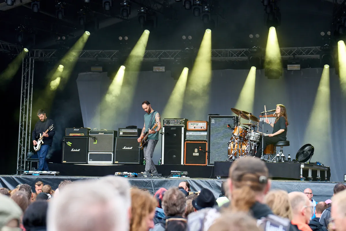 Deze Franse heavy rock band Mars Red Sky opent hun set met hypnotiserende instrumentale muziek, wat direct een groot contrast vormt met het theatrale geweld van hun voorganger. Het trio presenteert een muddy sound in de bas, drums en gitaar. De overtuigende instrumentals gaan van atmosferisch, hypnotiserend en psychedelisch naar zwaar, zwaarder, zwaarst. De hoge, chant-achtige vocals voegen hier een extra laag aan toe, maar zijn soms zo clean dat elke onzuiverheid opvalt en helaas zijn dit er een hoop. Dit maakt het lastiger in de sfeer van de muziek op te gaan.