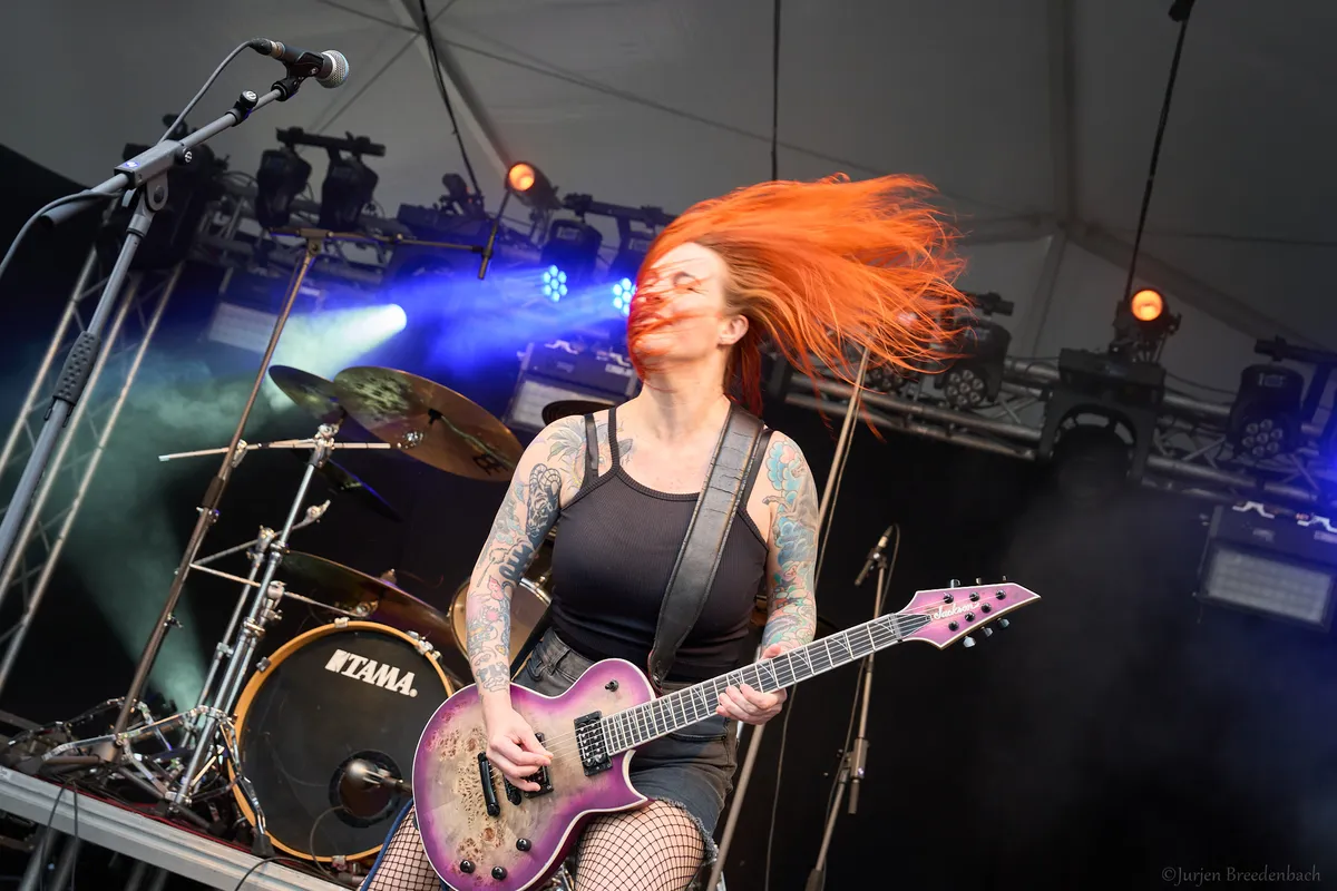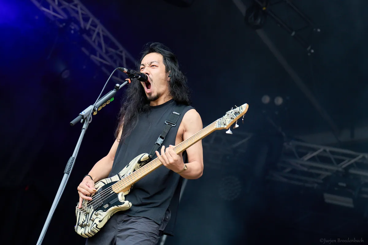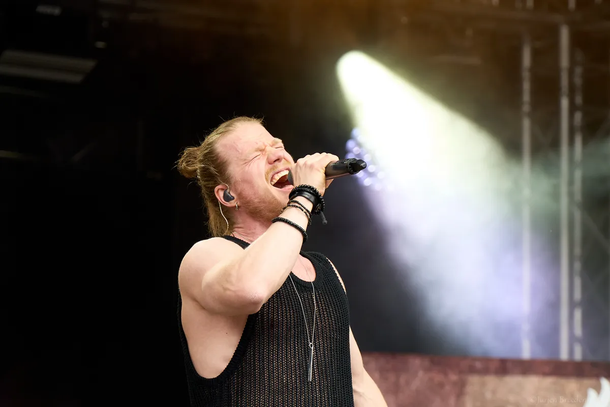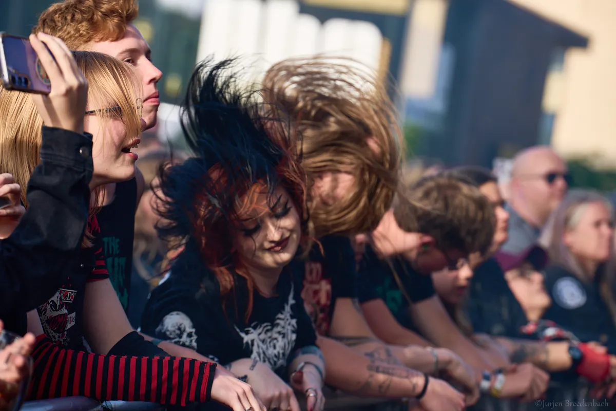 Groot geworden door covers op YouTube, is Halocene één van de opmerkelijkste acts op de programmering dit jaar. Terwijl de geharde metalheads van de gelegenheid gebruik maken voor een rondje langs de vele merch stands en de food area op het terrein, staat er voor het podium een trouwe schare fans los te gaan. De set van Halocene bestaat vandaag voornamelijk uit de covers die ze groot hebben gemaakt, met System of a Down’s Chop Suey als publieksfavoriet en een metalcoreversie van Sam Smith’s Unholy als grote verrassing. Met onder andere Maleficent van het gelijknamige album uit 2023 laat de band ook hun eigen stem horen. In een dramatische outfit met rode vleugels geeft zangeres Addie een theatrale, vocaal indrukwekkende show weg. Halocene wint misschien niet de originaliteitsprijs, maar zijn goed in wat ze doen. Een vermakelijk optreden dat even lucht geeft in een dag vol gitaargeweld. (Tessa van der Veen)