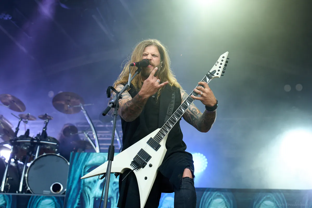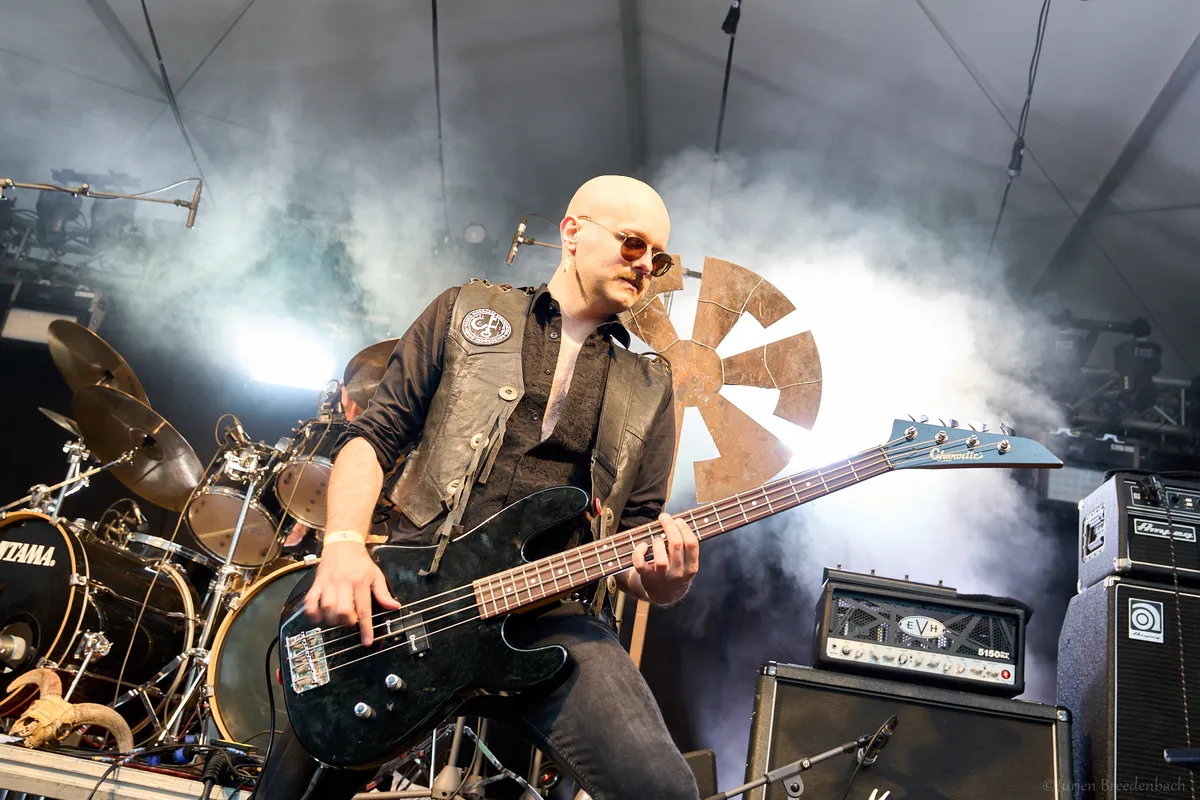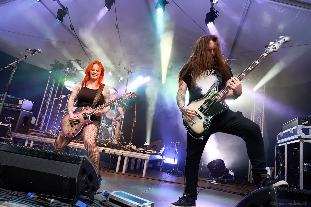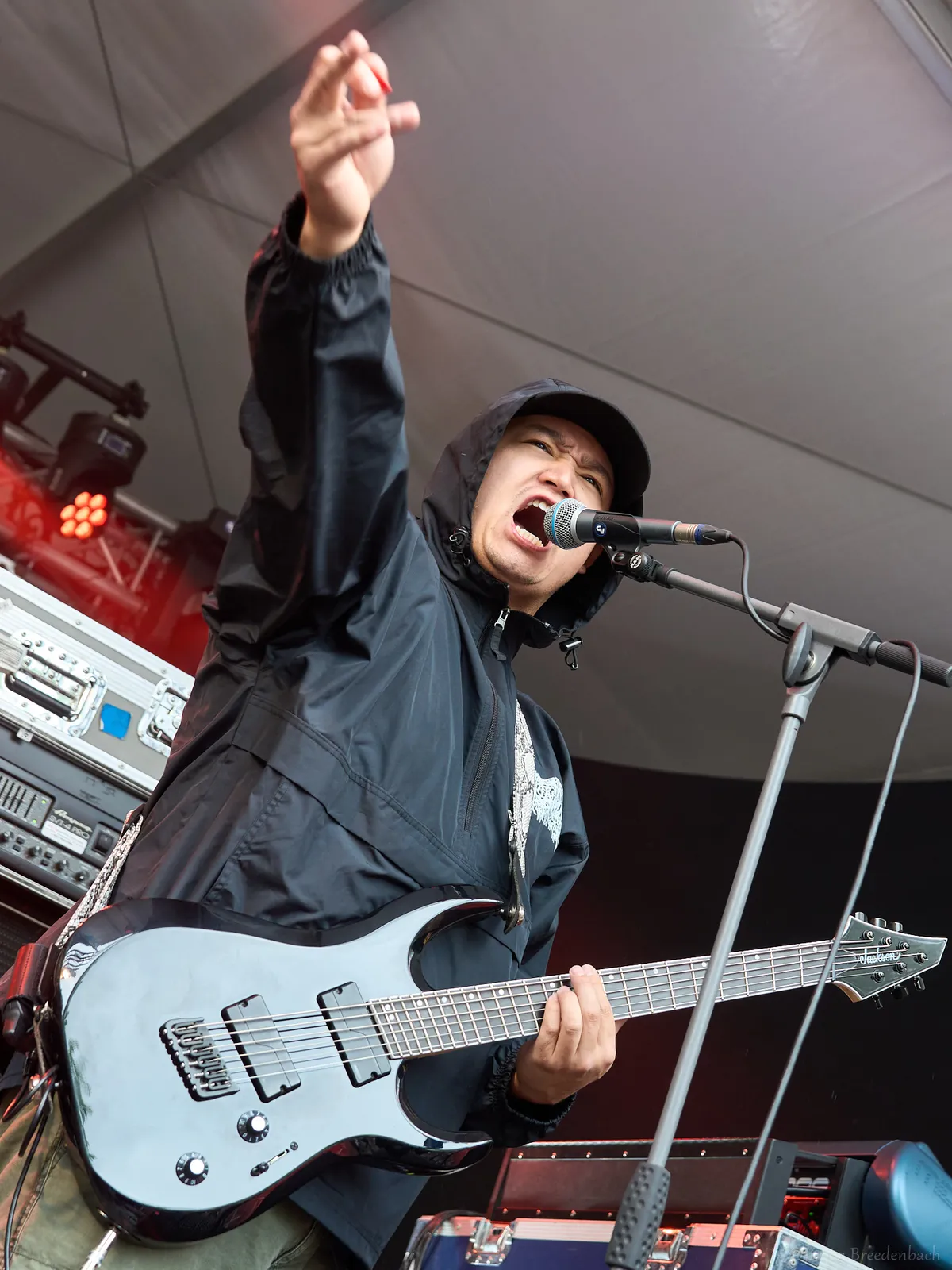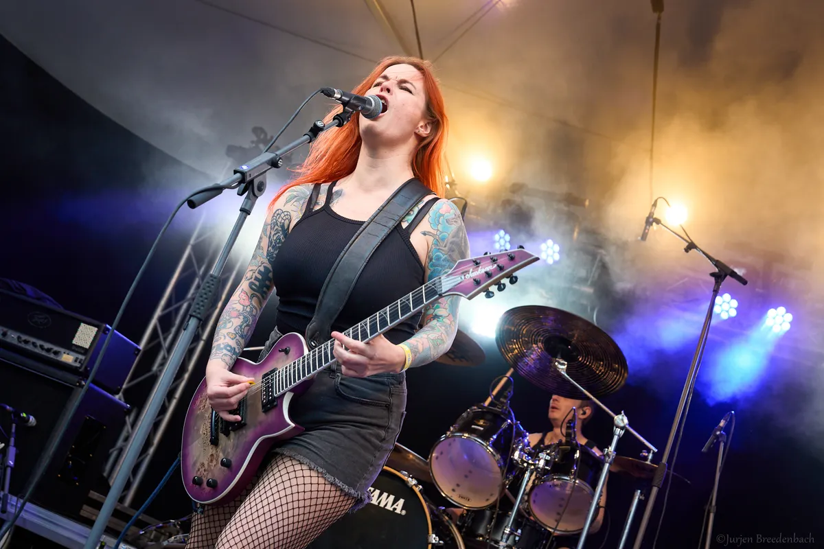 Groot geworden door covers op YouTube, is Halocene één van de opmerkelijkste acts op de programmering dit jaar. Terwijl de geharde metalheads van de gelegenheid gebruik maken voor een rondje langs de vele merch stands en de food area op het terrein, staat er voor het podium een trouwe schare fans los te gaan. De set van Halocene bestaat vandaag voornamelijk uit de covers die ze groot hebben gemaakt, met System of a Down’s Chop Suey als publieksfavoriet en een metalcoreversie van Sam Smith’s Unholy als grote verrassing. Met onder andere Maleficent van het gelijknamige album uit 2023 laat de band ook hun eigen stem horen. In een dramatische outfit met rode vleugels geeft zangeres Addie een theatrale, vocaal indrukwekkende show weg. Halocene wint misschien niet de originaliteitsprijs, maar zijn goed in wat ze doen. Een vermakelijk optreden dat even lucht geeft in een dag vol gitaargeweld. (Tessa van der Veen)