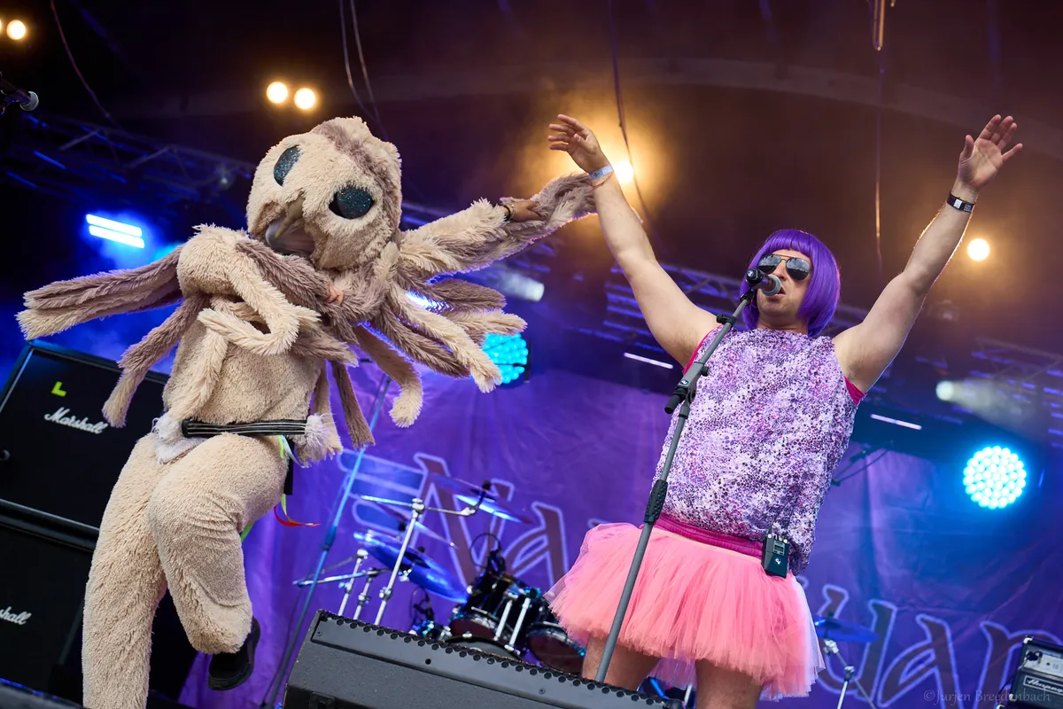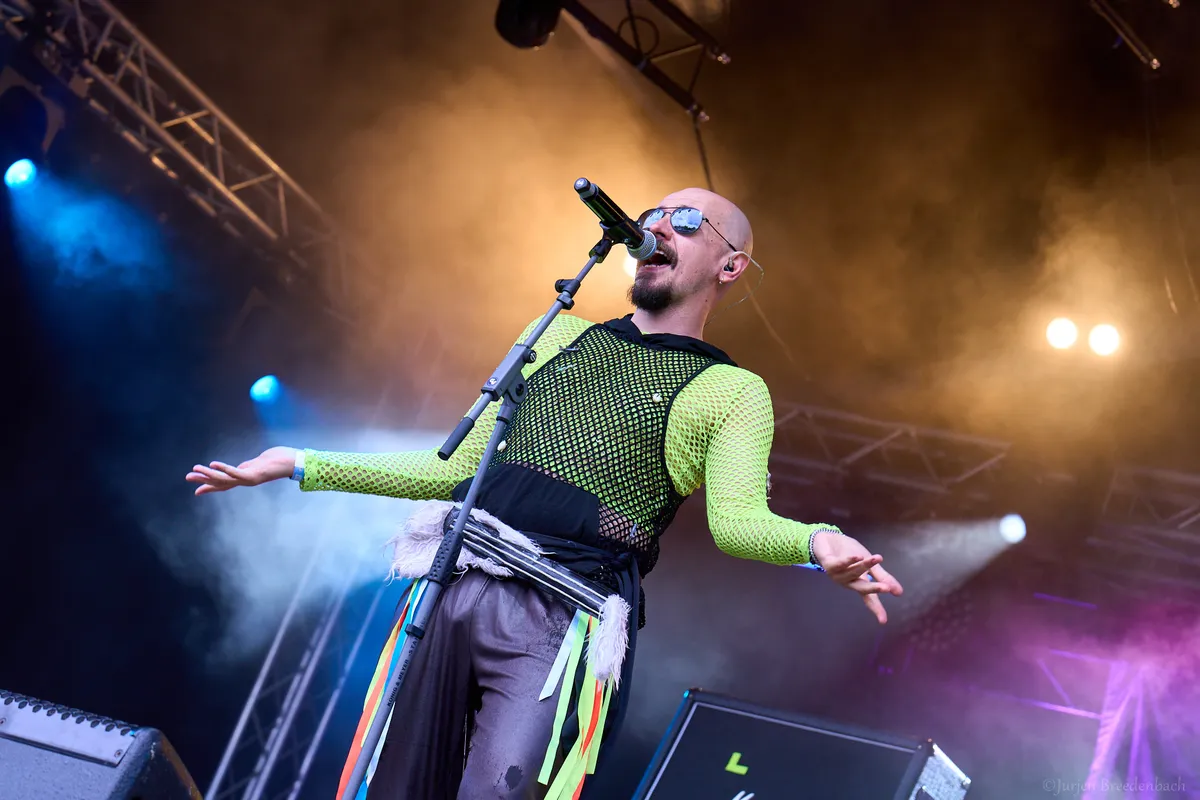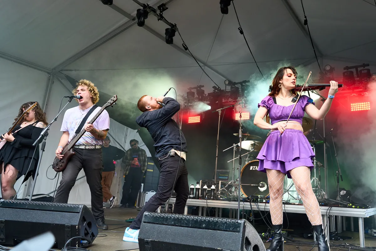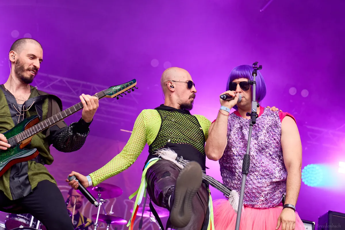 Groot geworden door covers op YouTube, is Halocene één van de opmerkelijkste acts op de programmering dit jaar. Terwijl de geharde metalheads van de gelegenheid gebruik maken voor een rondje langs de vele merch stands en de food area op het terrein, staat er voor het podium een trouwe schare fans los te gaan. De set van Halocene bestaat vandaag voornamelijk uit de covers die ze groot hebben gemaakt, met System of a Down’s Chop Suey als publieksfavoriet en een metalcoreversie van Sam Smith’s Unholy als grote verrassing. Met onder andere Maleficent van het gelijknamige album uit 2023 laat de band ook hun eigen stem horen. In een dramatische outfit met rode vleugels geeft zangeres Addie een theatrale, vocaal indrukwekkende show weg. Halocene wint misschien niet de originaliteitsprijs, maar zijn goed in wat ze doen. Een vermakelijk optreden dat even lucht geeft in een dag vol gitaargeweld. (Tessa van der Veen)
