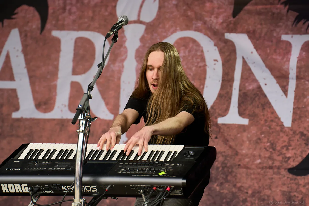 Het is aan de Finse act Arion om het spits af te bijten. Terwijl de eerste festivalgangers mondjesmaat het terrein binnendruppelen, staat er al een kleine schare fans te genieten van de gelikte show van de Finnen. Duidelijk is dat de complete set voorgeprogrammeerd is, hierdoor is er ook tijd voor interactie met het publiek. Het geluid klinkt goed maar mag nog wel een tandje harder. Deze veelzijdige band weet de enigszins kleffe symfonische powermetal vaak genoeg af te wisselen met snelle rifjes en blastbeats waardoor het bij vlagen thrashy aan doet. De nieuwste single Wildfire wordt door zanger Lassi Vääränen zeer krachtig neergezet en gewaardeerd door het publiek met luid applaus. De rest van de set ligt in dezelfde lijn: veel energie, snelle rifjes en powerzang. Ze sluiten de act waardig af met de hit At The Break of Dawn. (Sannette de Groes)