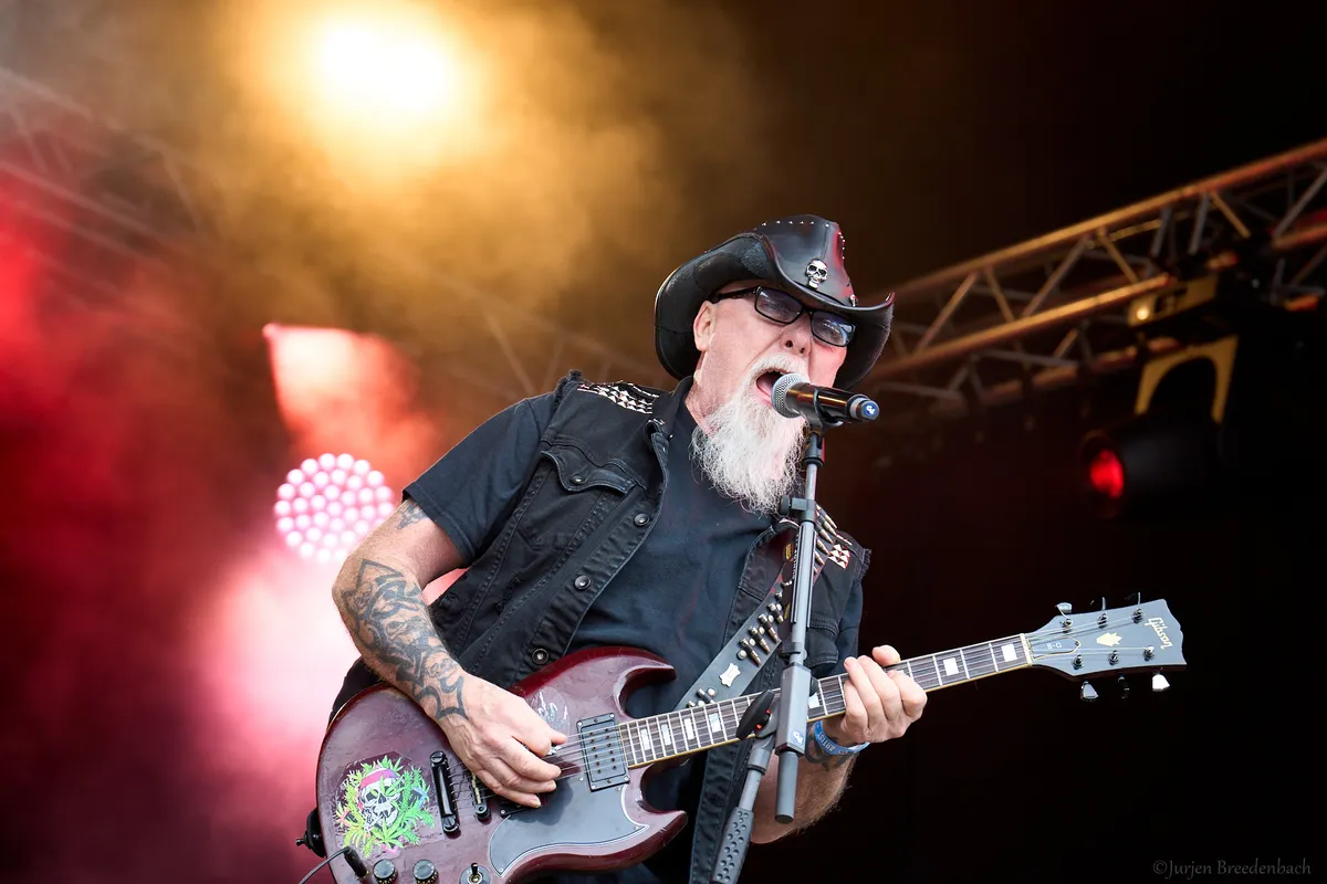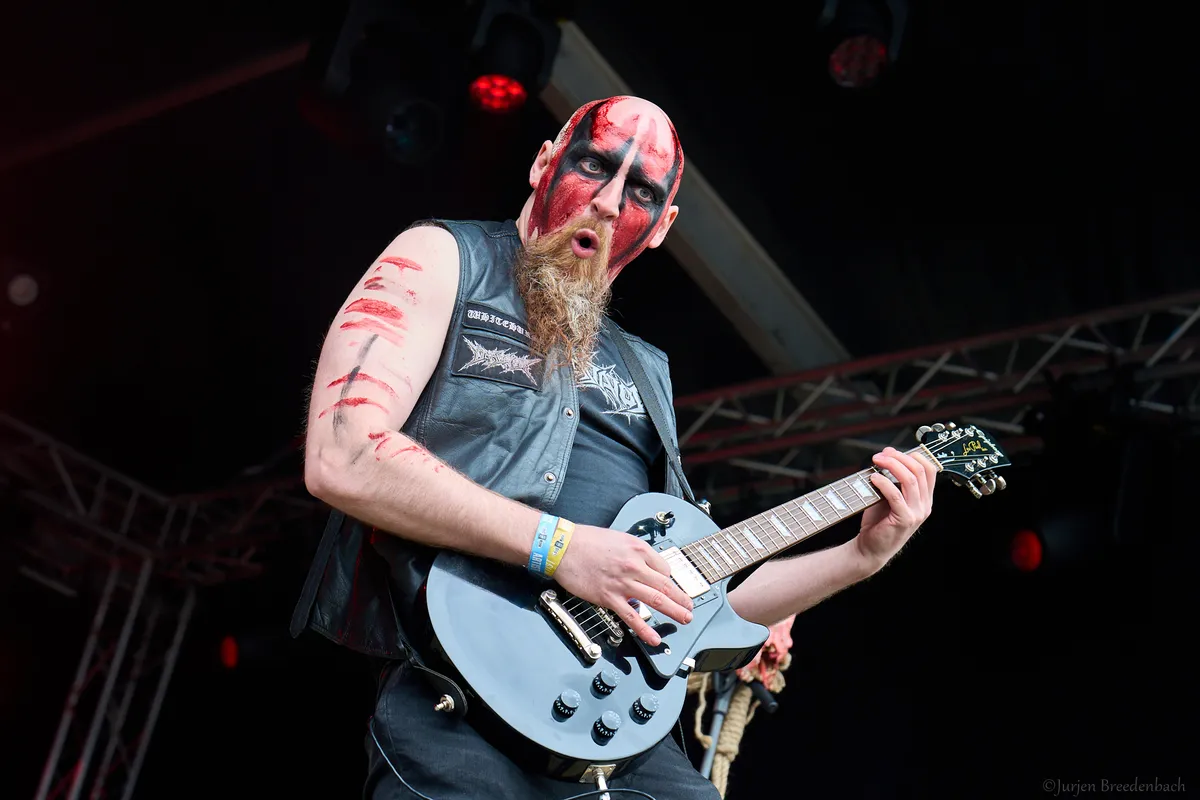 Hellripper is misschien begonnen als een eenmansband, nu is het een volledige formatie met een volledig geweld. James McBain en consorten blijken precies te brengen waar het publiek nu op zit te wachten, een potje snel en hard gebeuk. De door Metal Hammer Magazine gekroonde King of the Arcane Mosh maakt zijn titel waar en leidt zijn menigte regelrecht de chaos in. De black ‘n roll nummers over bovennatuurlijke thema’s worden uitgevoerd met harmoniserende v-gitaren, wilde riffs en gitaarsolo’s, elke track sneller dan de vorige. Hellripper sluit af met Headless Angels en gooit er hier nóg een tandje bovenop, McBain waarschuwt dat hij over ongeveer 90 seconden het publiek ingaat duiken, “Be fucking ready!” en daar surft hij, 90 seconden later, al solerend het enthousiaste publiek over. (Tessa van der Veen)
