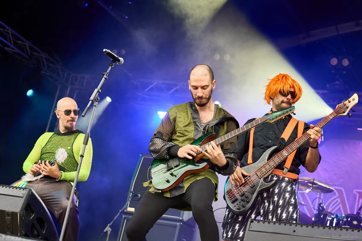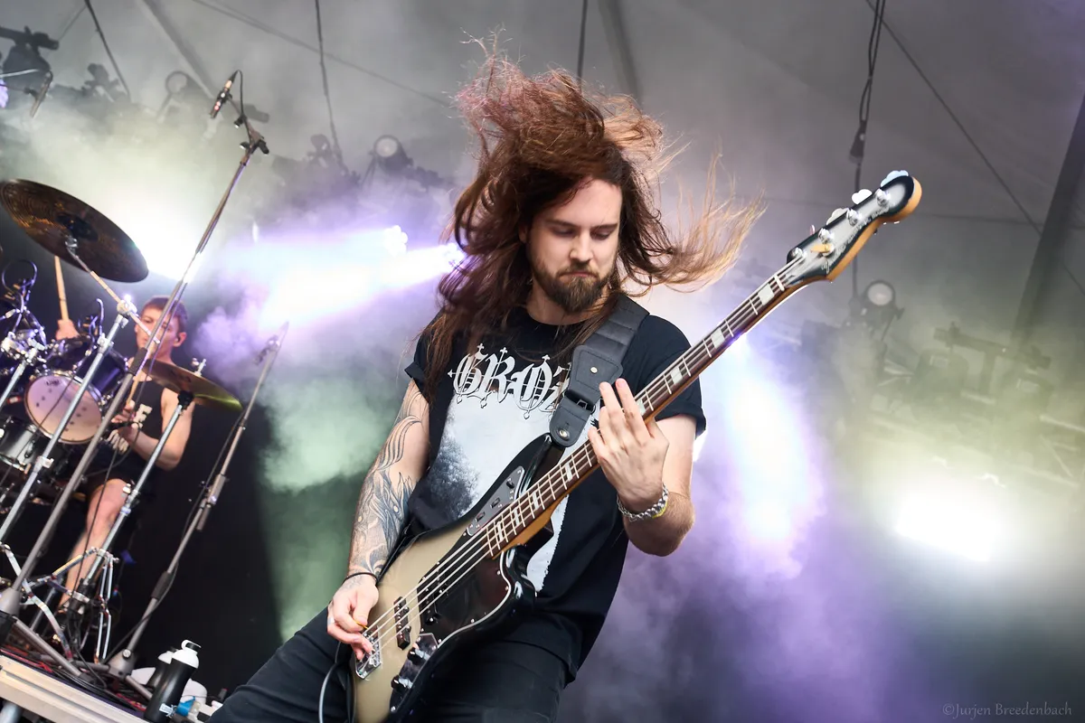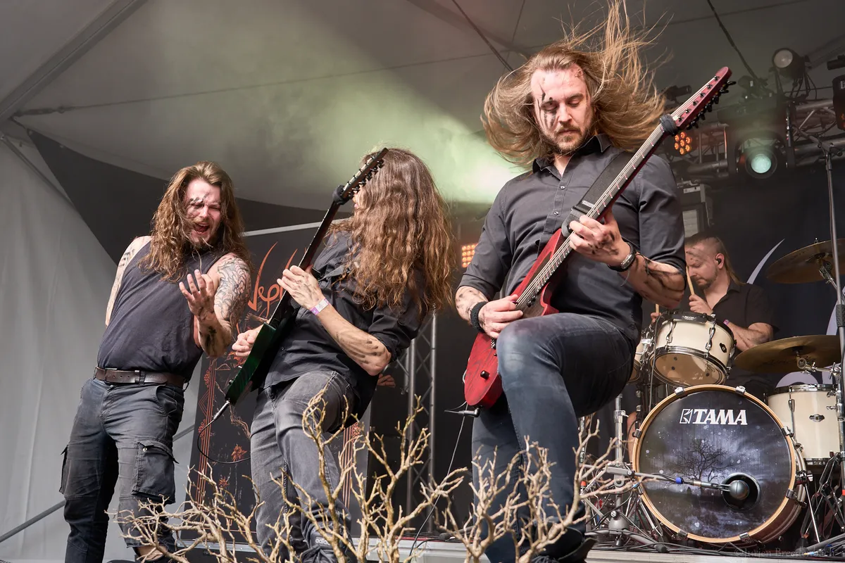 De laatste opener van de Reaper Stage neemt ons niet mee het graf in, maar op een reis langs de sterren naar andere dimensies. De muziek van het Schotse DVNE wordt sterk beïnvloed door science fiction en fantasy, hun naam is zelfs een directe verwijzing naar Frank Herbert’s invloedrijke werk Dune. DVNE laat hun muziek voor zich spreken. De nummers hebben hypnotiserende, wijdse instrumentals en melodische, soms Arabische lijnen. Aangevuld met de spacy synths en het ruimtelijke gevoel van de samenzang van de drie vocalisten van de band, hebben de nummers een verhalend effect dat het publiek transporteert naar woestijnplaneet Arrakis. Met afsluiter Sarmatæ neemt DVNE de luisteraars nog één keer mee in een headbang-meditatie die steeds zwaarder voelt tot we abrupt met z’n allen weer op de aarde staan. (Tessa van der Veen)