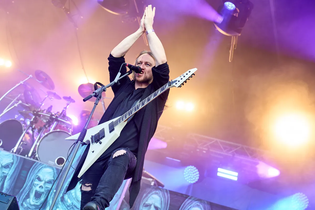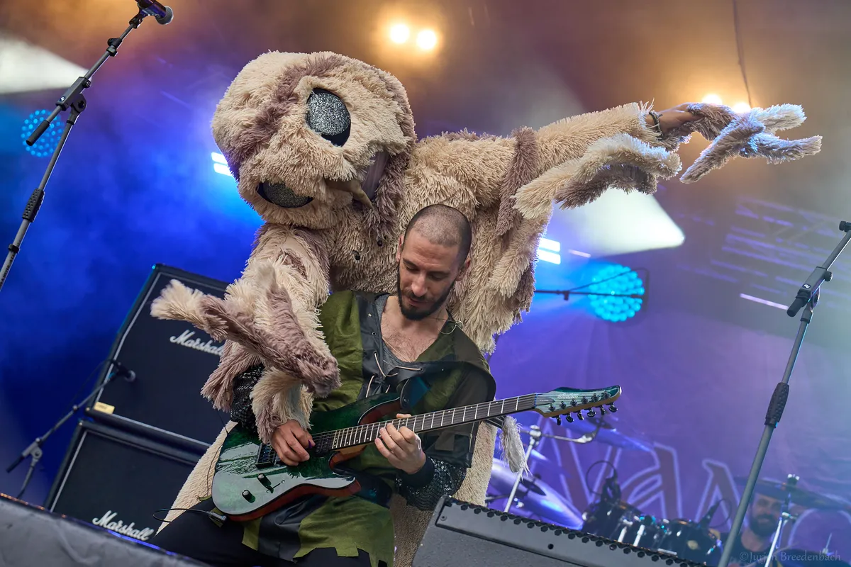 Het is al vaker gezegd, maar Orden Ogan bewijst het nog maar een keer: Je hoeft geen originele muziek te maken om succes te hebben op het festivalpodium. De Duitse power metal band heeft de Main Stage gevuld met een heus theaterdecor en een riser zo hoog dat de drummer boven al zijn bandgenoten uittorent. De show wordt geopend met Deaf Among The Blind, waar de band meteen laat zien wat deze in huis heeft. Gitaarsolo’s, synchroon headbangen, interactie met het publiek en vooral meteen veel drama en theater. Door meteen in het eerste nummer het achterste van hun tong te laten zien, zat er weinig opbouw in de set en werd de show van een uur halverwege al eentonig. Gelukkig heeft het bier rijkelijk gevloeid vandaag en leek het grootste deel van het publiek hier geen enkel probleem mee te hebben. Dat er bierliefhebbers voor hem stonden, ontging ook de vocalist van de band niet. Tijdens een publieksparticipatiemoment, één van de vele, had hij snel door dat het publiek beduidend liever “Order of Beer!” scandeerde dan Order of Fear!. Instrumentaal werd er erg strak gespeeld, wel aangevuld met backing track. De vocalist zong niet altijd even zuiver, maar dit werd ruimschoots gecompenseerd door zijn showmanship, waar het bij Orden Ogan toch om lijkt te gaan. (Tessa van der Veen)