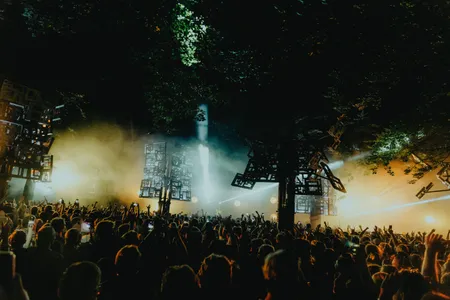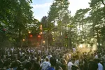 JakoJako heeft de fijne kneepjes van het vak niet gelijk in een club geleerd, maar in een Berlijnse hardware hemel (SchneidersLaden). En het lijkt erop dat ze vanaf daar met de sneltrein is gekomen, want met dat tempo en die cadans raast ze door. Ze creëert hypnotiserende loops en je hoort niet wanneer de ene track eindigt en de ander begint. Dat heeft waarschijnlijk alles te maken met de manier waarop ze haar muziek grotendeels ter plekke vorm geeft. Ze focust zich dan ook volledig op de apparatuur voor haar. Af en toe een haarlok aan de kant, een korte blik naar voren en weer door. Haar beat onderbreekt ze nauwelijks, alleen om af en toe een melancholische synth ruimte te geven. Ze is snel, maar niet gehaast. Dat ze een Berghain resident is, merk je wel want het is dat ze netjes na haar tweeënhalf uur durende slot stopt, anders was het ochtend geworden voor iemand het doorhad. Maar ochtend is het zeker nog niet, donker is het inmiddels wel. Nou ja, de zon is onder. Het bos wordt verlicht door honderden kleurrijke lichten en (mega) lasers. Maar hoe laat is het nu eigenlijk? In het Klokkenbos is het 15.00, 18.15, 23.30 en nog tientallen andere tijden. Maar goed, op een bordje verderop lezen we "tijd doet hier niet mee".