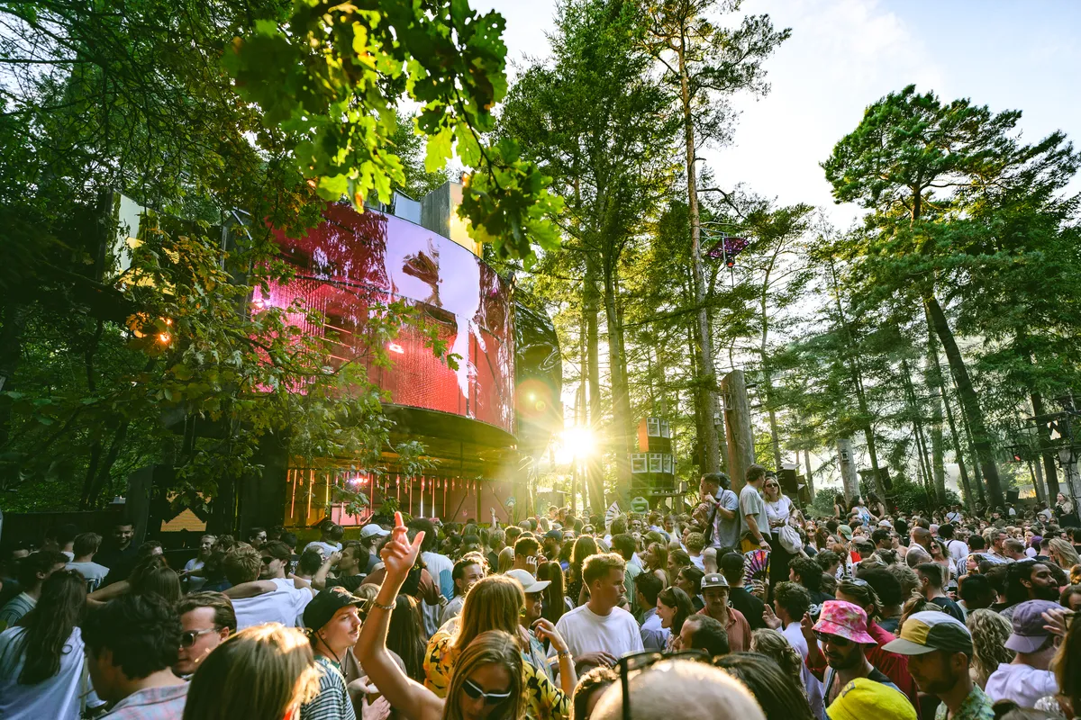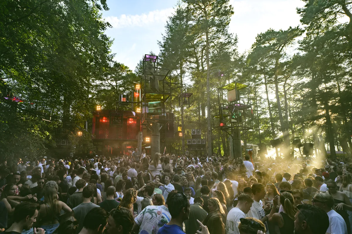 We starten het festival bij de Utrecht gestationeerde 36framez. De zon komt boven de futuristisch uitziende stage uit en ‘Set You Free’ blaast uit de zestien Funktion-One speakers. De eerste bezoekers gaan rustig in het zonnetje zitten of gooien al een dansje rond een van de stammen die verspreid staan over de dansvloer. Wie al opgewarmd is door de zon, kan direct door naar het Beukenbos. Daar klinkt het alsof Fiene via ‘The Space Track’ met aliens aan het babbelen is. Misschien nodigt ze hen wel uit, of nodigen de aliens zichzelf uit en vertelt Fiene hen dat ook zij gewoon netjes achteraan de rij bij de mensen mogen aansluiten. Even later wordt voor de stage een tak aangestoken en opgerookt. Fiene mixt precies op dat moment ‘Purple Haze’ van suki en sniper1 erin. Toeval? Ze graaft de ene oude en veelal onbekende track na de andere uit de grond, knipt alle interludes en intro’s eruit en vlecht ze vervolgens als een heerlijk dansbaar geheel aan elkaar. Want dat gebeurt inmiddels volop; dansen. En de zon is zo warm dat men om de zonnigste plekjes op de dansvloer heen danst – in september! Wanneer Fiene haar set met schaterende saxofoons afsluit, is het tijd voor de volgende stage.