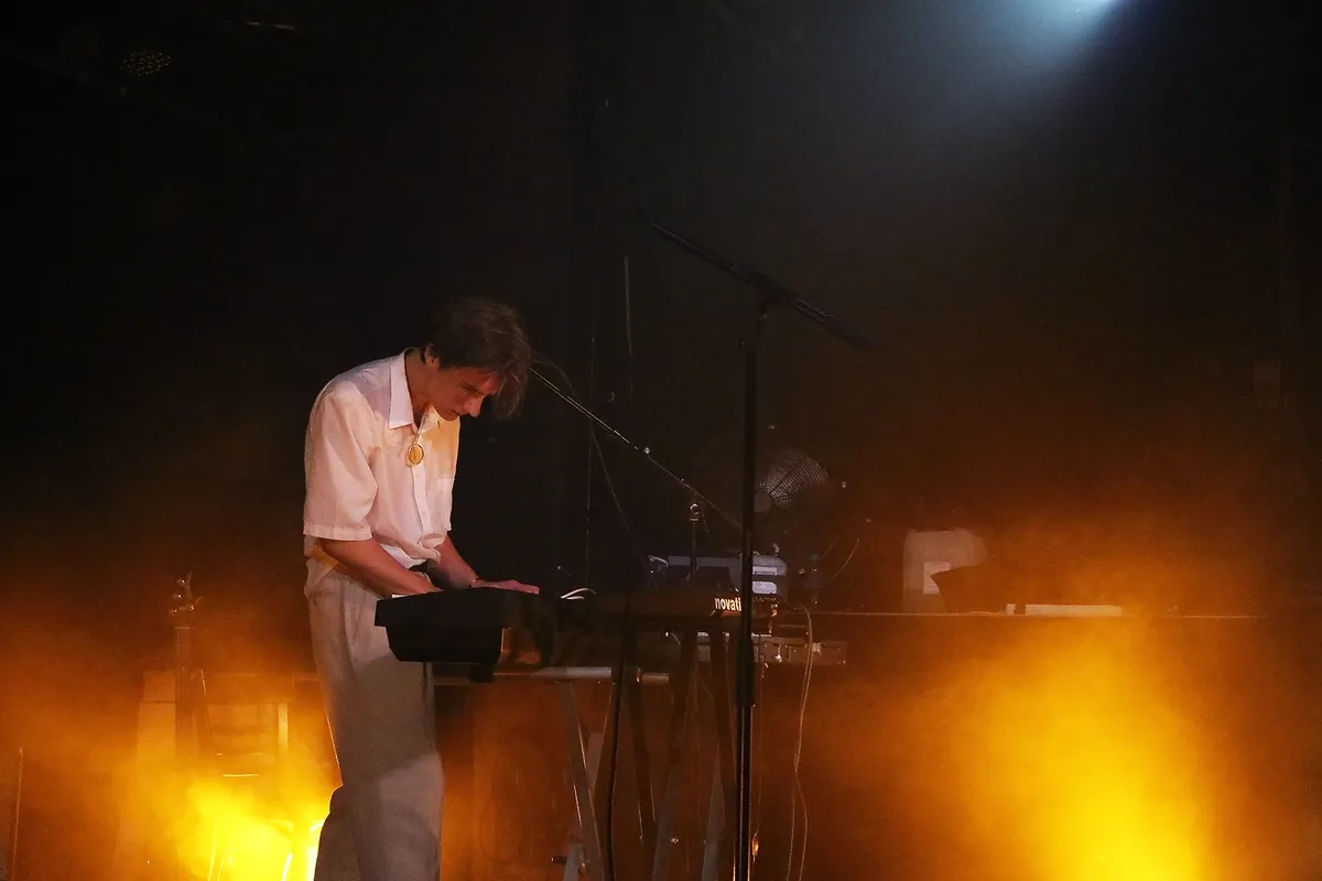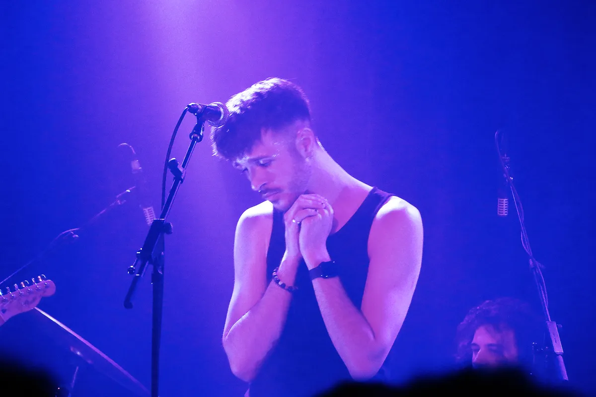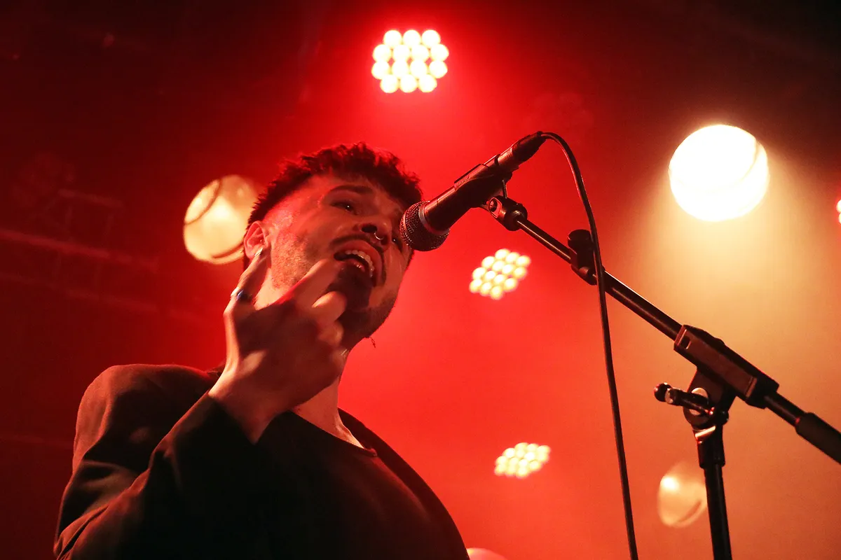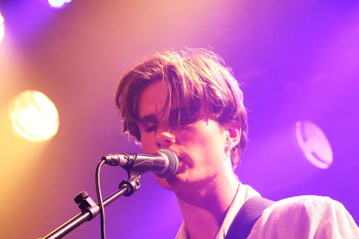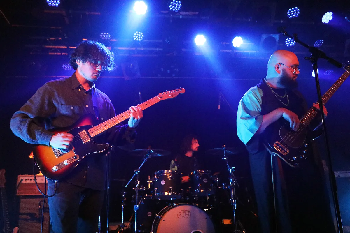 Maar het hoofdprogramma van deze avond draait om de Nijmeegse band IOK. Jeroen, Sander, Youri en Ramon presenteren hun nieuwe ep Being In The World, gekleed in het zwart met turquoise accenten. Vergeleken met hun roze overhemden, truien en kimono’s voor debuutplaat PINK (2022) een stuk zwaarder qua toon.