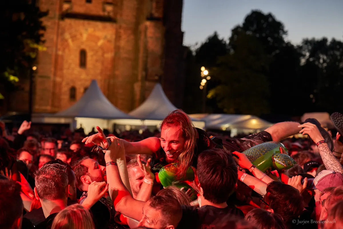 Het kerkhof onder de Oldehove is eindelijk weer het epicentrum van metalminnend Friesland. Op vrijdagmiddag trekken metalheads na twee jaar doorgeschuif en gepuzzel met de line-up richting het plein voor drie dagen ontlading. Met de weergoden goed gestemd is het een feest van hereniging zonder een spat regen. Op het programma een negental bands, waarbij opvallend veel thrashmetal. Desalniettemin mag de Friese folkmetal van Baldrs Draumar de Reaper Stage openen en zien we op de Main Stage halverwege de avond de vrienden van Peter Pan Speedrock als smaakmakers optreden. Met het metalminnende team van 3VOOR12Friesland struinen we drie dagen over het terrein en krijg je van elke dag een indruk van wat we meemaken.