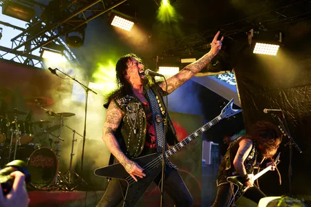 Met een lekker duistere sample van een schallende torenklok en duivels, dierlijk gegrom leiden de drie gemaskerde Amerikanen hun zelf geproclameerde black-‘n-roll in. Die vervolgens verder wordt onderstreept in openingsnummer Black Rock’n’Roll. Dit Motörhead-geïnjecteerde addergebroed van Midnight is compromisloos in hun van alle kanten bijtende en stekende acte de présence. De mooi gemeen punk raspende blackzang snijdt evenzo gemeen. Het duivelse imago wordt door de drie prima aangedikt, met de gretig gescandeerde ‘evils’ en dergelijke. Toch ook met een bepaalde knipoog; de redelijk ongecompliceerd rockende stampers hebben eveneens een zekere luchtigheid. De passerende songs zijn verder wel wat inwisselbaar. Die doorstampende songstructuren worden veelvuldig opgepimpt met gitaarsoli, maar missen naar gelang de setspeeltijd verstrijkt enige spanning. Het houdt niet in dat de blasfemische rock het laat afweten in zijn sinistere sfeertjes. Zeker niet, de mannen overtuigen wel degelijk in goed venijn. Het is dus meer vanuit een compositorisch oogpunt dat Midnight uiteindelijk niet geheel weet te beklijven. (JdR)