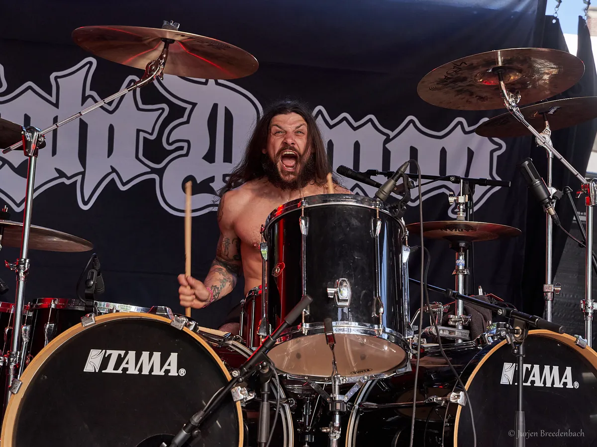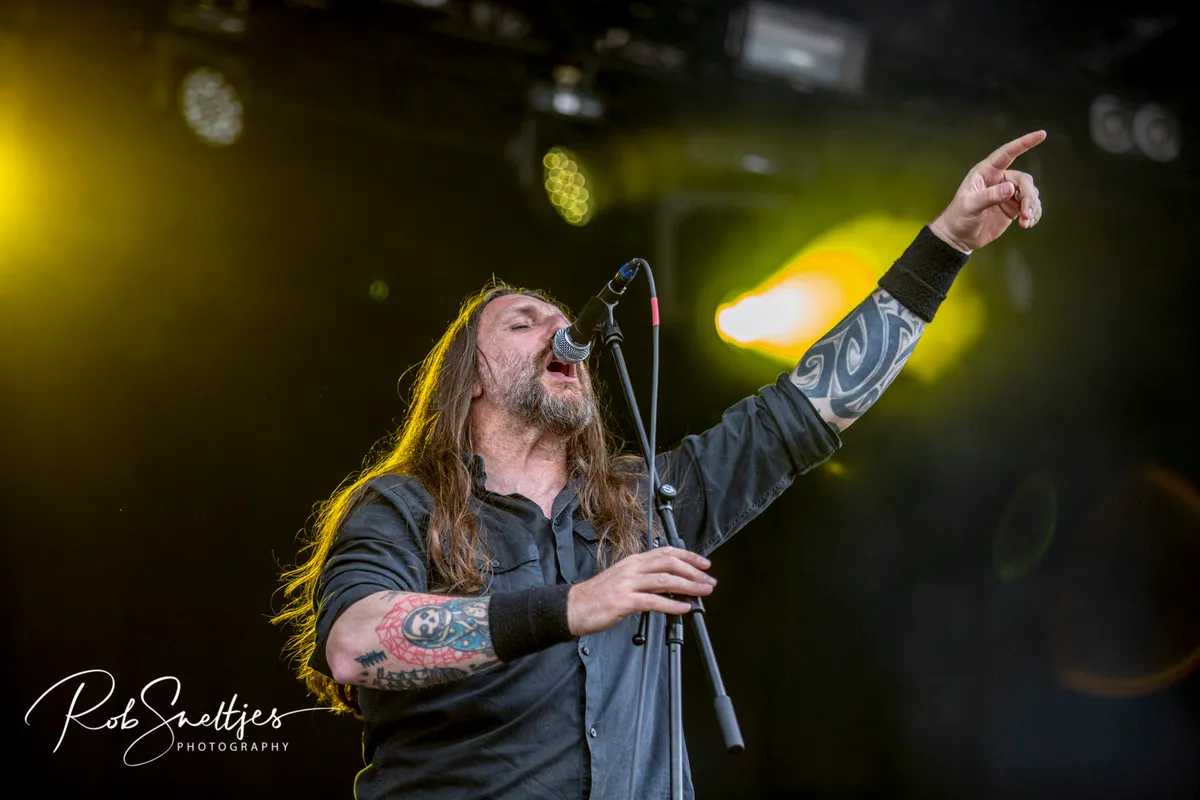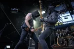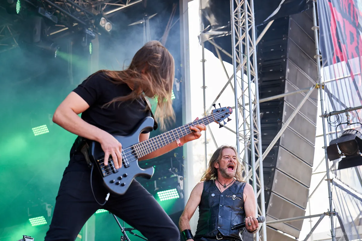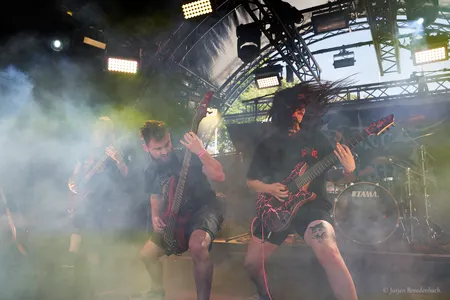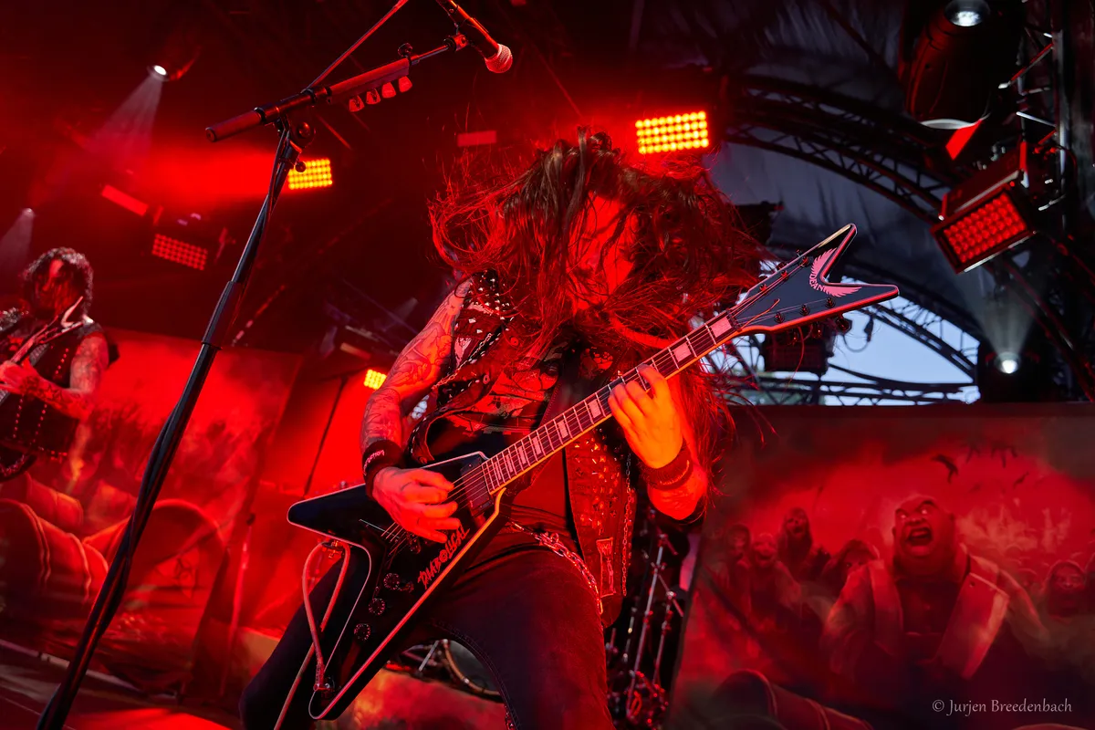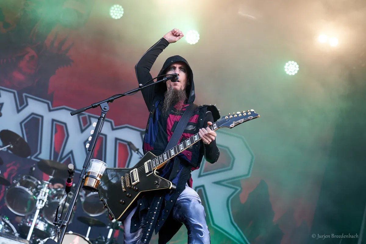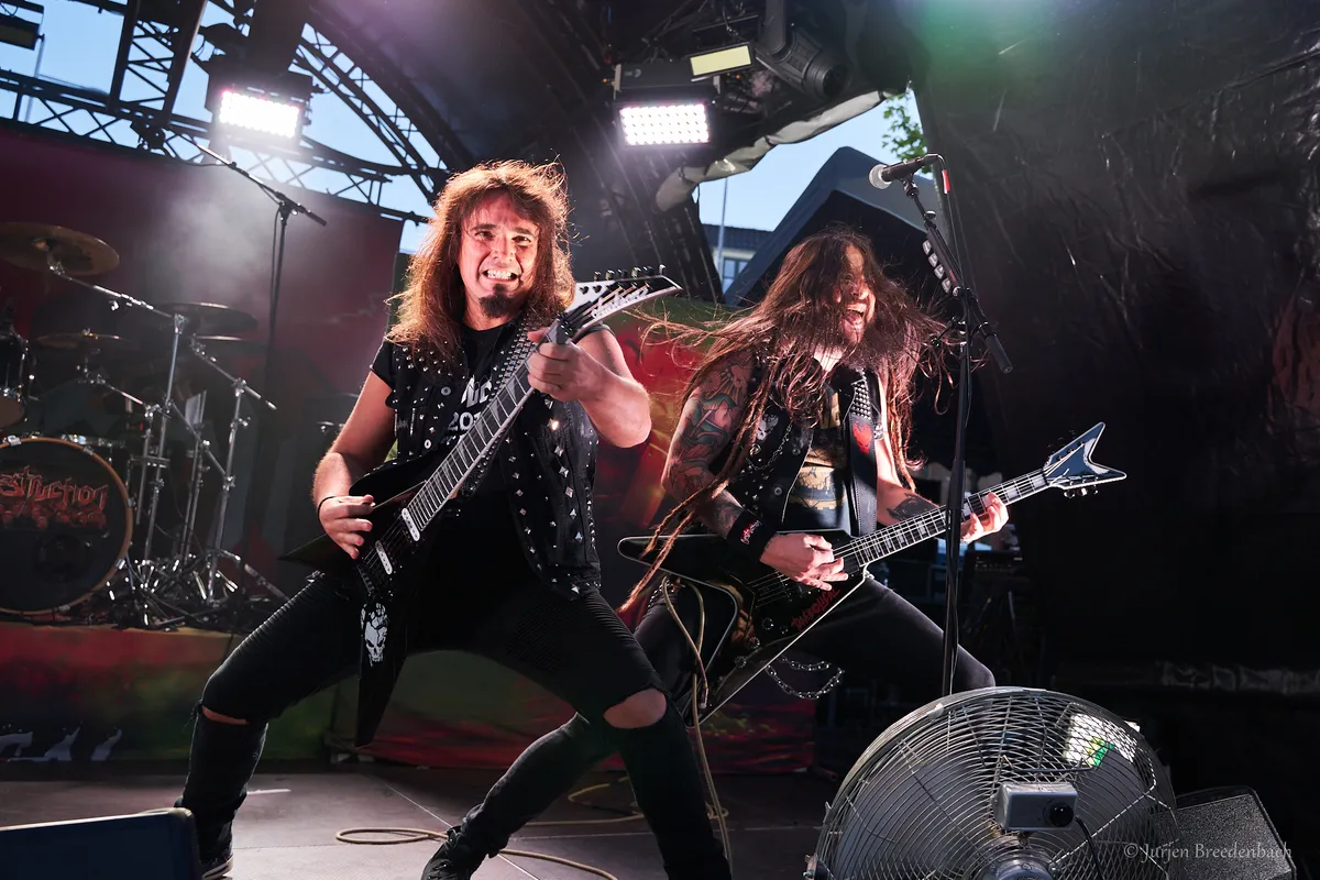 Eén van de forerunners uit de Duitse thrashmetalscene in de jaren tachtig weet de Reaper Stage goed te kraken. De rauwe thrash van Destruction is vanavond onverbiddelijk. “Curse the gods!’’ Het moge duidelijk zijn. De raakvlakken met vooral stijl-, tijds- en landgenoot Kreator zijn daar, maar dan allemaal net iets meer omgeven van die punkende rauwheid. Oude krakers als Nailed to the Cross en Mad Butcher passeren. Geweldig, hoe deze oude rotten hun prangende thrash nog voor het voetlicht weten te brengen. Laatstgenoemde track dateert zelfs alweer uit 1984. Het oude materiaal én de band hebben hoor- en zichtbaar weinig tot niets aan slagkracht verloren. Alles wordt op het scherpst van de snede gebracht, zonder ook maar enige opsmuk. Misschien met soms dat net wat té gedateerde, maar kom. Hiervoor kom je naar een podium! Die energie, die punch.. Dan verdien je als band dubbel en dwars nog alle bestaansrecht en kan je nog een mooi tijdje voort. En met ook prima thrashend recent songwerk als het langskomende Repent Your Sins toont dit Teutoonse metalbeest aan dat de rek er eveneens op compositorisch vlak zeker nog niet uit is. (JdR)