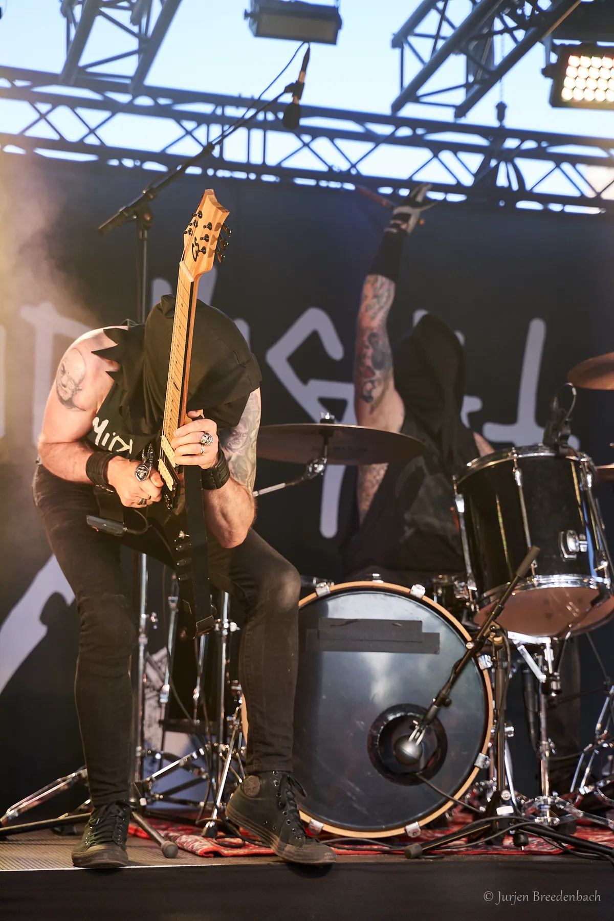 Op vervolgens de Reaper Stage komen de enthousiaste, zonnige Californiërs van Night Demon met een aanstekelijke pot riff-branie uit de oude school. De heerlijk weggespeelde heavy metal is doorspekt met seventies hardrockende fratsen, inclusief de authentiek aanvoelende samenzang met hoog meeyelgehalte van hoofdzanger/bassist Jarvis Leatherby en gitarist Armand John Anthony. En passant trakteert de band ons Hollanders op Golden Earrings hitkanon Radar Love. Dat een prikkelende en frivole uitvoering heeft, gehuld in onmiskenbaar heavy metal jasje. Werkt prima, met in de speelsheid daarbij de gezongen, verbasterde tekstflard ‘’..playing Motörhead all night long!’’ Het trio biedt muzikaal weinig tot niets nieuws, maar doen hun ding op een wijze waarvan oprechte passie afdruipt . En dat in die ‘’oude wereld’’, laverend tussen oervaders Motörhead – daar is ‘ie weer – en Iron Maiden. “We are the night demon!’’ Thematiek en presentatie zijn zonneklaar, maar het kan rekenen op grote en meer dan terechte bijval van het publiek. Lekker showtje! (JdR)