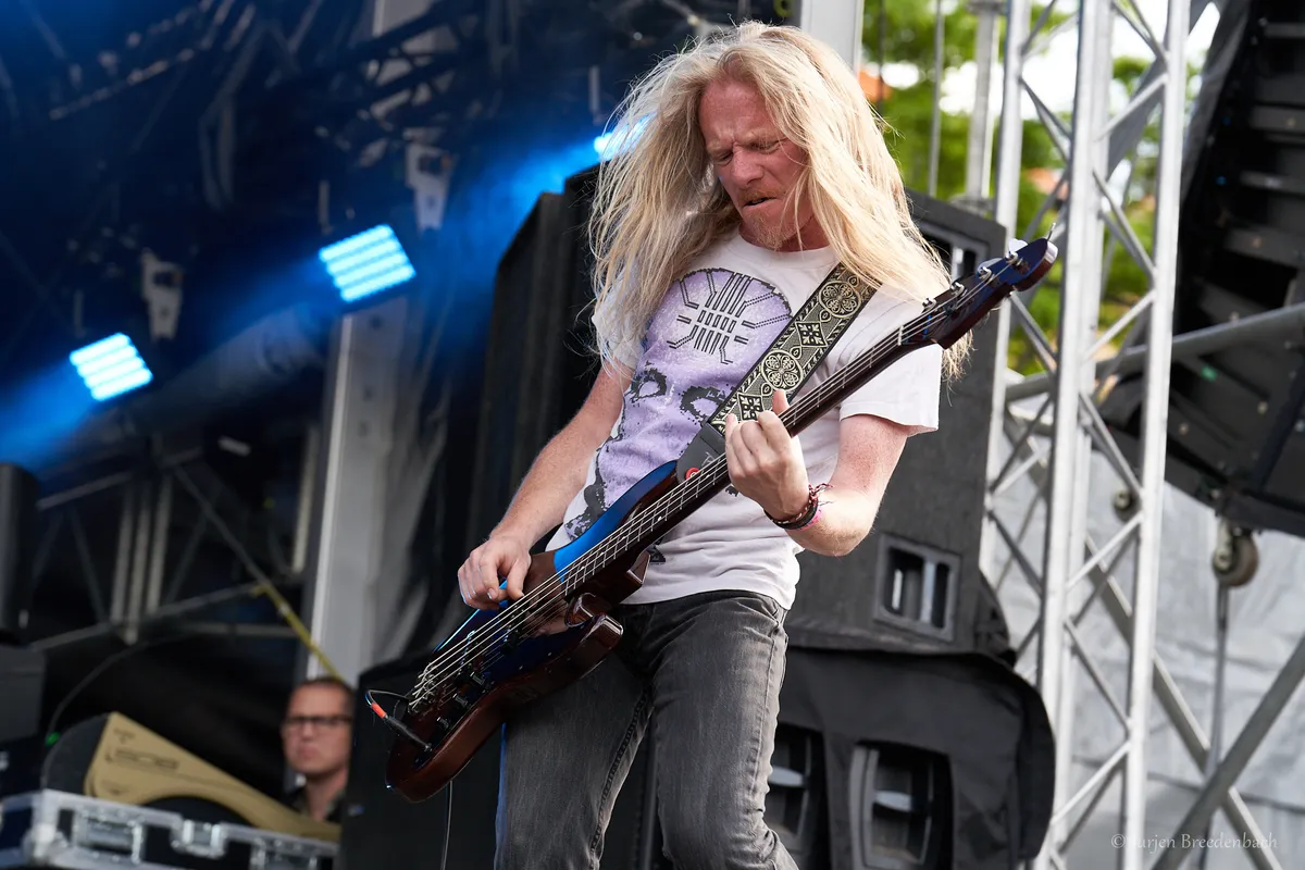 Phoenix thrashlegende Flotsam & Jetsam is weliswaar al heel wat jaartjes bezig, maar het weerhoudt de band er niet van keurig netjes om de paar jaar een plaat af te leveren. Sterker nog: de Flotzilla klinkt beter dan ooit, dankzij een hernieuwde creatieve output beginnend vanaf het behoorlijke The Cold uit 2010. Met vorig jaar de puike plaat Blood In the Water is het dan ook een graag geziene gast op Into The Grave, betrouwbaar als ze zijn met hun melodieuze thrash metal. Boegbeeld Eric A.K. mag dan zijn falsetto grotendeels verloren zijn, maar zijn stem heeft plaatsgemaakt voor een aangenaam ruwe toon, zoals meteen goed te horen is in opener Demolition Man. Het hakkende oudje Suffer the Masses vervolgt, en vanaf dan kan er eigenlijk weinig stuk. Solide thrash met een kop en een staart, die hard van leer trekt maar ook ruimte biedt voor melodie en groove. Zoals hoe opgefokte tracks als Hammerhead en Desecrator bijvoorbeeld worden opgevolgd door I Live You Die, een hoogtepuntje in de set. Dikke pluim ook voor Cryptosis drummer Marco Prij, die halsoverdekop moest invallen voor Ken Mary door een onvoorzien probleem met zijn paspoort, en de pittige fills en breaks van die track op verbluffend strakke wijze weet in te kleuren. Maar dat nieuwe tracks ook goed uit de verf komen, is een bewijs van hoe Flotsam & Jetsam sterker dan ooit is. Brace For Impact, The Walls en Burn the Sky: allen nummers volgestopt met riffs, pakkende zanglijnen en begenadigde grooves. Erg solide weer! (MS)