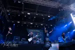 Wat dit jaar de line-up van Into the Grave siert is toch wel de grote toevoer aan Nederlands talent. Zo ook met het Eindhovense Sisters of Suffocation. In 2017 braken ze Neushoorn af tijdens de pre-party, maar ditmaal is de death metalband gepromoveerd naar de Reaper Stage. Helaas wel zonder de altijd imponerende strot van Els Prins, die om gezondheidsredenen een pauze neemt. Gelukkig hebben ze een andere klasbak uit de metalscene op de vocalen vandaag: Linn Liv, van o.a. Pictura Poesis en Cyanide Paradise. Net als in 2017 kan Into the Grave nogmaals rekenen op een potje kwaliteits death metal, bruut wanneer het moet maar melodieus en modern op subtiele momenten. De liefde voor death metal in alle soorten is nadrukkelijk aanwezig, en brengt ons langs zowel de Zweedse en Floridiaanse varianten, met daarbovenop een subtiel deathcore sausje. Zo komt een track als Humans Are Broken hevig blastend uit de startblokken schieten, om vervolgens in een blaffende, uiterst grimmige breakdown te belanden. Het zijn de kleine foefjes bij Sisters of Suffocation, zoals in het grimmige Tales of a Martyr, waarbij het basspel van Emmelie Herwegh een glansrol vervult richting de climax. Of hoe I Am Danger wat intense Meshuggah-achtige gitaargeweld laat horen halverwege. Het wordt allemaal gebracht dankzij een goede gezamenlijke chemie, die aanstekelijk werkt op een hevig moshend publiek. Erg lekker dus! Laat die nieuwe plaat Eradication maar komen! (MS)
