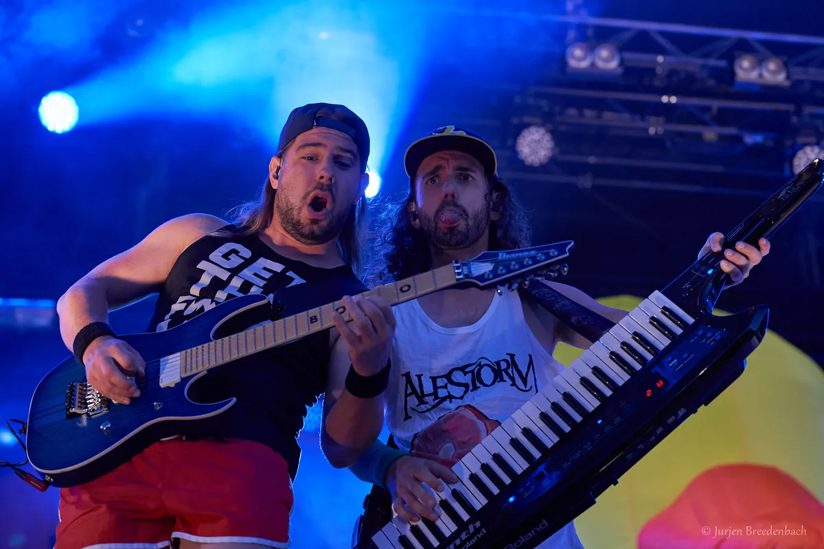 Het Foute Uur van Radio 538: je vindt die meezingers helemaal geweldig, of het is je voorstelling van de absolute hel. En ook op de Oldehove is het Foute Uur geslagen: Alestorm als headliner, met 75 minuten aan banale piratenmetal. De één kan vroeg het bed in duiken, voor de ander is het een uitgelezen kans om met piratenhoed en drinkhoorn heen en weer te deinen. Hoe je het ook wendt of keert: de folk metal van deze Schotten is beduidend met een knipoog en een grijns gebracht. En dat is maar goed ook, want de composities hebben bar weinig om het lijf. Men neme een keytar riedeltje, klapt er powerchords, een coupletje en een refreintje overheen en je hebt een Alestorm track te pakken. Toch, je moet het maar net kunnen, want vele copycats hebben het geprobeerd en gefaald. En Alestorm stampt triomfantelijk grijnzend over dat kerkhof van heengegane bands, met een fles rum in de hand. Want ja, Alestorm weet regelrechte hits te schrijven getuige hoe een oudje als opener Keelhauled of het nieuwe Mexico zich moeiteloos in je kop wurmt. Het mission statement wordt dan ook in Treasure Chest Party Quest goudeerlijk blootgelegd: "We're only here to have fun, get drunk. And make loads of money." Zulke transparantie verdient respect. Elk nummer is pakkend, van het stampende Tortuga, inclusief bierattende Captain Yarrface (Luke 'Beef Guy' Philp) tot de deinende piratenwals van Nancy The Tavern Wench. Captain Morgan’s Revenge weet zelfs haast thrashend te beginnen, maar die pittige opleving is van korte duur helaas. Met tracks als Drink en Fuck You With An Anchor dient zich een einde aan. Voor de nee-knikker achterin een opluchting, voor de fan het einde van een feestje der herkenning. Terwijl Christopher Bowes en co. backstage mogelijk verbaasd maar geamuseerd staan te gniffelen hoe dit ooit zo’n succes werd. Is Alestorm nu een totale parodie of de beste piraten metalband die er is? Ja. (MS)