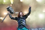 Tijd nu voor een dosis theatrale metal die geen tussenweg kent. In de categorie Powerwolf en het vanavond afsluitende Alestorm. Er zijn hele volksstammen die weglopen met dergelijke powermetal. Het zegt dus om de drommel iets over de populariteit ervan. Alles is – zo ook bij Gloryhammer – dusdanig aangezet dat het zijn doel meer dan eens voorbij lijkt te schieten. Maar, muzikaal tot in de puntjes uitgevoerd en natuurlijk met een dikke knipoog. Weelderige keyboardklanken die, op het kitscherige af, geregeld meegaan met de über-bombastische gitaarlijnen. En met zangpartijen die hun evenbeeld lijken te vinden in die van de gemiddelde Eurovisie songfestivalact. Tel daar nog de over de top neergezette thematische zaken van éénhoorns en aanverwante fantasy bij op. Hier moet je nogmaals, alles bij elkaar genomen, duidelijk voor openstaan.. Smaken verschillen en dat is uiteraard helemaal prima. Gloryhammer krijgt evenals enige jaren terug in ieder geval de handen weer genoeg op elkaar. (JdR)