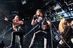 Op de Reaper Stage staat vandaag toch wel een van de voornaamste folk metalbands van het land: Heidevolk! Een Arnhemse klasbak die steevast een door bier aangedreven metalfeestje bewerkstelligt. En dat de Main Stage ook wel geschikt was geweest, bewijzen ze vandaag zonder meer. Er is geen doorkomen aan bij de Reaper Stage, met als resultaat dat menigeen het enkel van een afstandje kan aanschouwen. Maar het deert niet, want buiten kijf staat dat het in goede aarde valt, met meerdere drinkhoorns die de lucht ingaan. Het is lekker zware metal die aardig stompend en rollend binnenkomt, met vernuftig gitaarwerk en een ritmesectie die zowel tot headbangen als dansen toezet. Maar de grote troef is het zangduo van Daniël Wansink en Jacco de Wijs, die zowel de Engelstalige versie van Wolf In Mijn Hart als het beukende Saksenland op heerlijk sonore wijze inzingen. Dit alles met een respectvolle voorliefde voor Gelderse mythes en sages, vervormd tot stampende meezing metalsongs als Het Geldersch Volkslied, Vulgaris Magistralis en Nehalennia. Het springt, het raast, en zet aan tot onbezonnen crowdsurfen en moshen. En dat is onderhand een garantie bij Heidevolk. (MS)