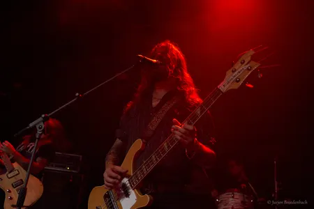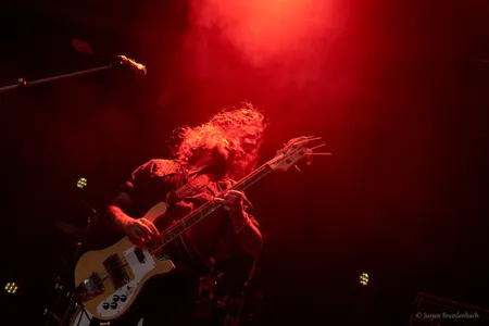 Bij terugkomst is Hippie Death Cult meteen een aangename binnenkomer. Waar je bij de naam misschien aan wijde pijpen en een zweverige sound gaat denken, brengt dit viertal doomy galmende stonerrock met een psychedelische en occulte omlijsting. Het is een lekker speelse show met een heavy basisgeluid dat nergens verveelt omdat ze steeds weer eigenzinnige effecten met doomy riffs weten te combineren en is hun show een van de absolute uitschieters van het festival.