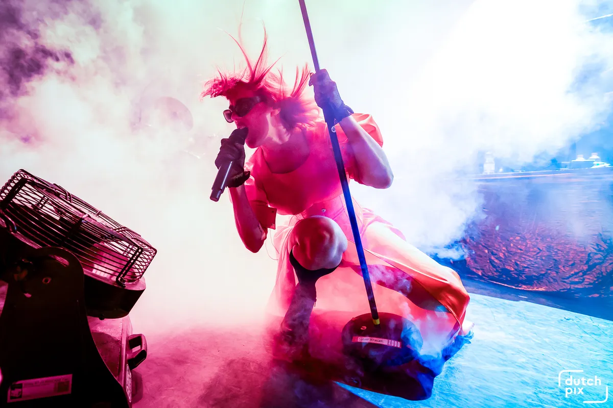 inneruu: als je die nog niet gezien hebt, zet het per direct op de 2025-voornemenslijst. Ik zag en fotografeerde ze bij hun releaseshow in Zaal 3. Er waren mannen in gekke pakjes, knettersnoeplepels, visuals van onder tot boven in de zaal, en een fictieve taxonomische classificatie van het publiek waaraan bepaald werd welk geluid je tijdens de show mocht roepen. Ondanks de enorm sensorische beleving weet inneruu altijd een kleine, intieme sfeer neer te zetten.