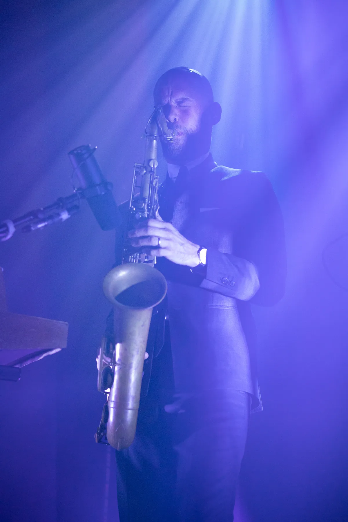 Over norse Oost-Duitsers gesproken: de podiumpresentatie van BRUUT! heeft wel iets weg van die van Kraftwerk. De vier bandleden zijn ieder in pak gehuld en maken een ietwat statische indruk. Oké, dat toetsenist Folkert Oosterbeek niet al te veel bewegingsruimte heeft is begrijpelijk, aangezien hij zichzelf heeft ingemetseld tussen zijn Philicorda’s en Farfisa’s, maar dat hij zich op geen enkel punt in de set laat gaan met een lekkere toetsensolo is toch jammer. Sowieso is er niet al te veel ruimte voor improvisatie, wat opmerkelijk is voor zulke getalenteerde jazzmuzikanten. De band speelt in het algemeen plichtsgetrouw hun meest recente plaat na. Als Maarten Hogenhuis dan wel de ruimte neemt voor een uitgebreide, geïmproviseerde saxofoonsolo op ‘Klets’, merk je dat de zaal daar gelijk enthousiast op reageert en hem opzweept tot een hoogtepunt van de set.