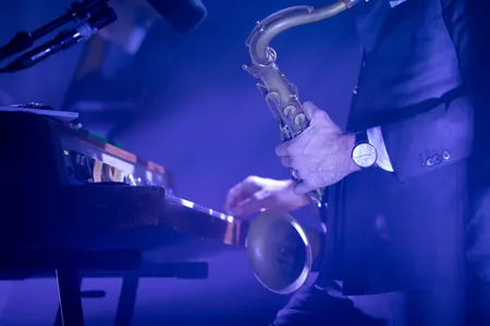 Vrijdagavond 9 december speelde het Amsterdamse jazzkwartet BRUUT! in Gebr. de Nobel. Of nou ja, jazzkwartet, enkel het label jazz zou de strak geklede heren tekort doen. Hoewel de carrière van BRUUT! een jaar of tien geleden inderdaad begon als een stel conservatorium jongens die rokerige jazz voor fictieve jaren ’70 spionagefilms maakten, zijn er in de loop van hun carrière talloze andere genres de revue gepasseerd. Zo brachten ze bijvoorbeeld in 2019 een onvervalste surfplaat uit in samenwerking met misschien wel Nederlands beste gitarist, Anton Goudsmit. Ook zijn ze ook nooit vies geweest van een gezonde dosis afrobeat, boogaloo of good old rock ‘n’ roll in hun muziek. Dat ze altijd op zoek zijn naar nieuwe geluiden bewees de band met hun meest recente album: nooit eerder flirtte het viertal zo hevig met elektronische muziek als op ‘Zest’. Eens kijken of dat geflirt de Leidse harten ook in vervoering wist te brengen.