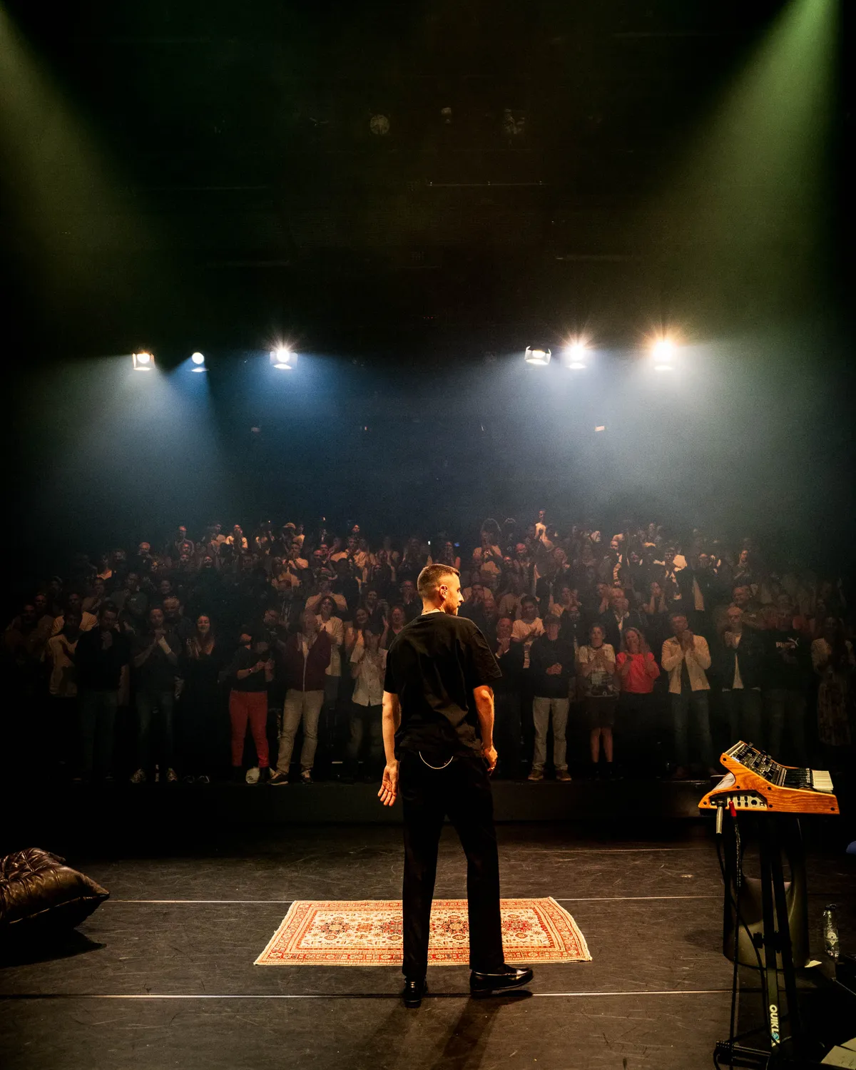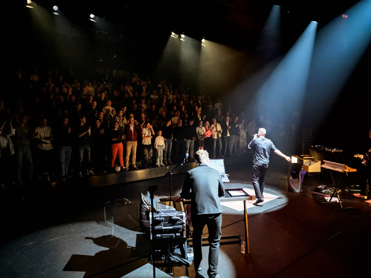 Toch blijft het een fragiel geheel. De beats zijn warm, maar de drumgeluiden staan wat zacht in de mix net zoals de toetspartijen. De gedachte achter deze setup is heel sterk, maar in de uitvoering komt het helaas nog net iets te houterig over. Dat heeft zeker ook de nodige charme; de romantiek van het analoge (om maar met track 'Analoog' van het album te spreken) spreekt boekdelen met de platenspeler, oud meubilair en kleed. Maar als performer mag de rapper nog iets sterker in zijn schoenen staan. Dat het nu een theatersetting is, mag daar geen invloed op hebben: de verhalen en de beats zijn er, nu nog wat meer overtuiging.