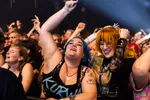 Het is al de hele dag duidelijk: vandaag mag Electric Callboy afsluiten. De Duitse band combineert metal met hardcore en techno en kan daarmee soms zeker op wat kritiek rekenen. Want metal en glitter, kan dat wel? Ons antwoord is een volmondige “ja”. Het is misschien ergens haast een gimmick, maar dan wel een goed geslaagde. De band begint zoals gewoonlijk met ‘Tekkno Train’ en het publiek gaat direct uit zijn dak. Tot ver achterin de tent wordt er gesprongen, gemosht en gedanst en er komen talloze crowdsurfers voorbij. ‘Spaceman’ komt al vrij vroeg in de set voorbij en wordt luidkeels meegezongen. Onder andere bij ‘Hypa Hypa’ wordt de temperatuur in de toch al warme tent flink opgedreven door pyro-effecten, die bij andere nummers dan weer worden afgewisseld met confetti. Af en toe voelt het een tikkeltje ingestudeerd, zeker als de fallusvormige piano op het podium komt en ‘Let it go’ en ‘I want it that way’ gecoverd worden. De interactie tussen frontmannen Nico en Kevin voelt op dat soort momenten een beetje cliché. Maar niemand die daarom maalt, want met ‘Pump it’, ‘Mindreader’ en natuurlijk ‘We got the moves’ geeft iedereen zijn laatste beetje energie. Zo eindigt deze eerste dag van Jera met een groot feest vol techno, glitter, en ja, toch ook genoeg metal!